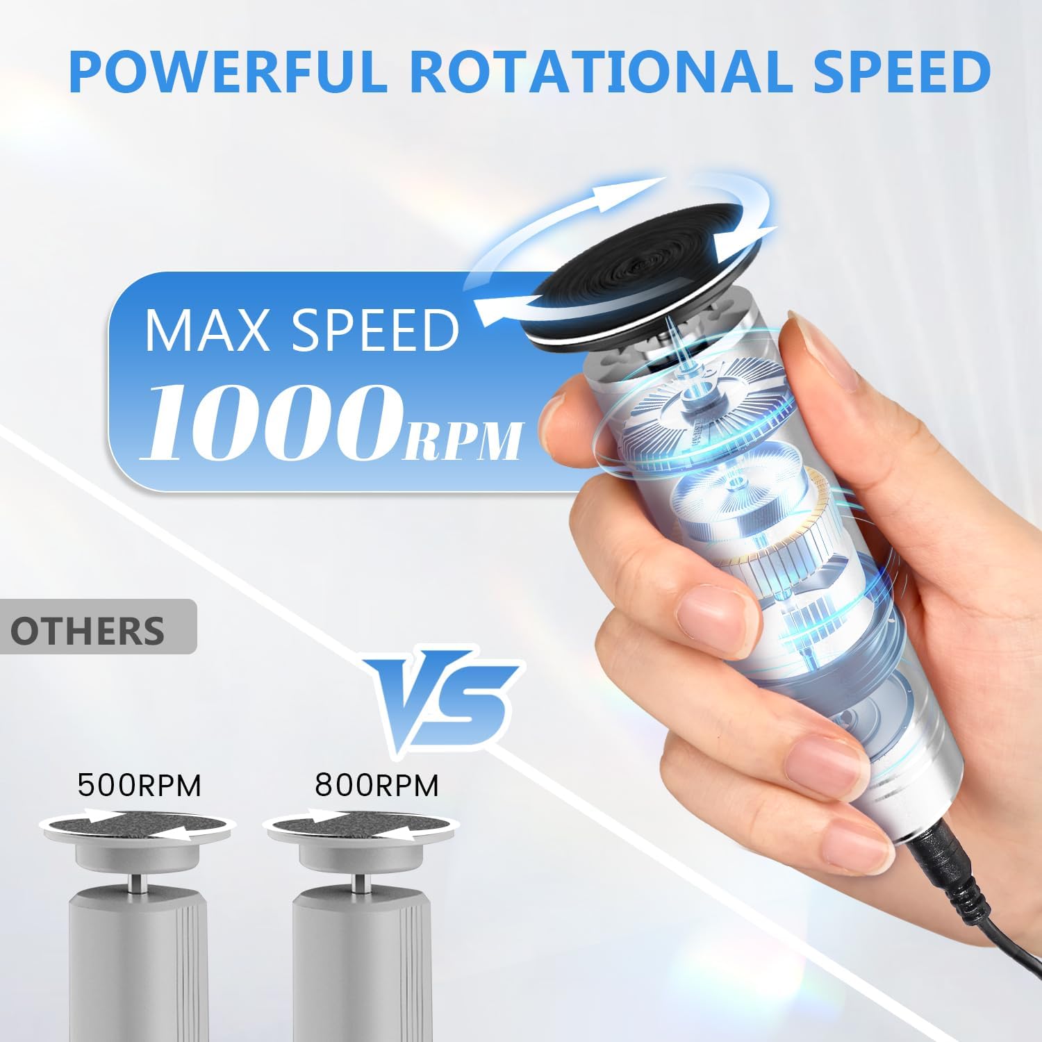 - 【POWERFUL MOTOR】krofaue electric foot grinder with powerful motor can be plugged in and use it right away. Our electric foot filer has a rotate 360 degrees, grinding dead skin in all directions. You can easily to remove foot and heel dead skin,dry skin,cracked skin,calluses, keeping your feet smooth