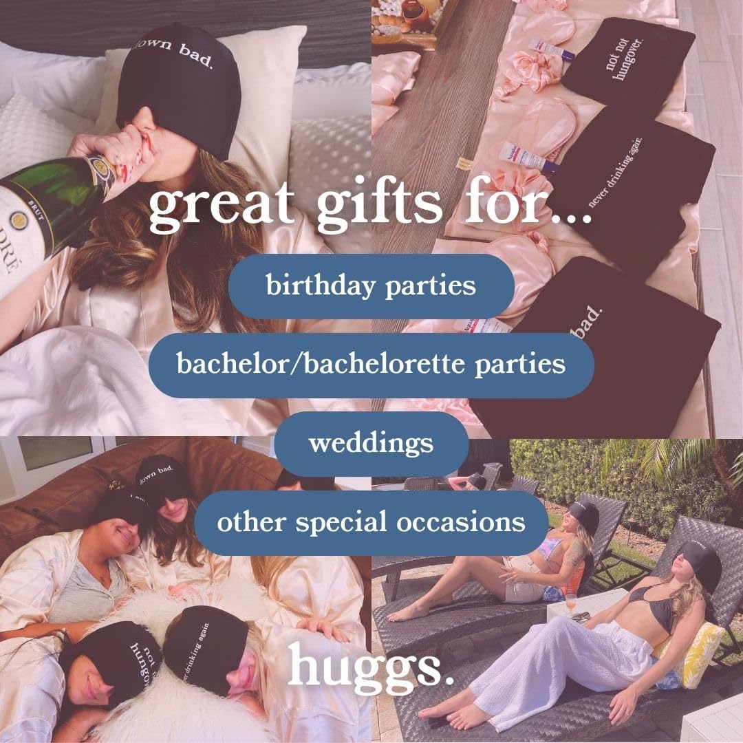 - Each hugg is made of soft, squishy, silicon gel that offers a cool, soothing remedy to your post drinking symptoms. the stretchable design ensures a snug and comfortable fit for all head sizes, and it is safe to wear on bare skin.