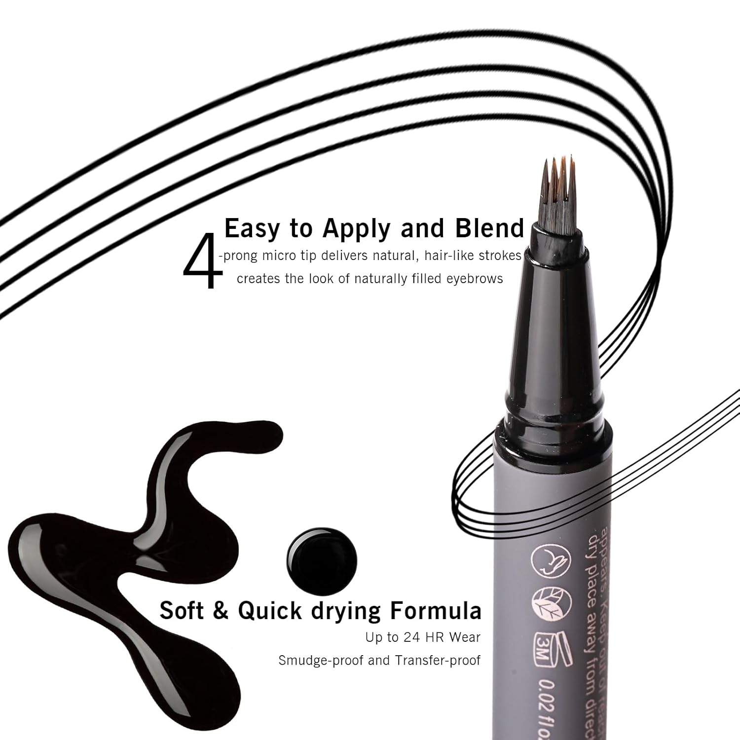 - 【Quick-Drying, Smudge-Proof & Long-Lasting】Our 4-prong eyebrow pen dries quickly to reduce smudging and allows easy layering. The long-lasting formula keeps your brows fresh and defined 24H.