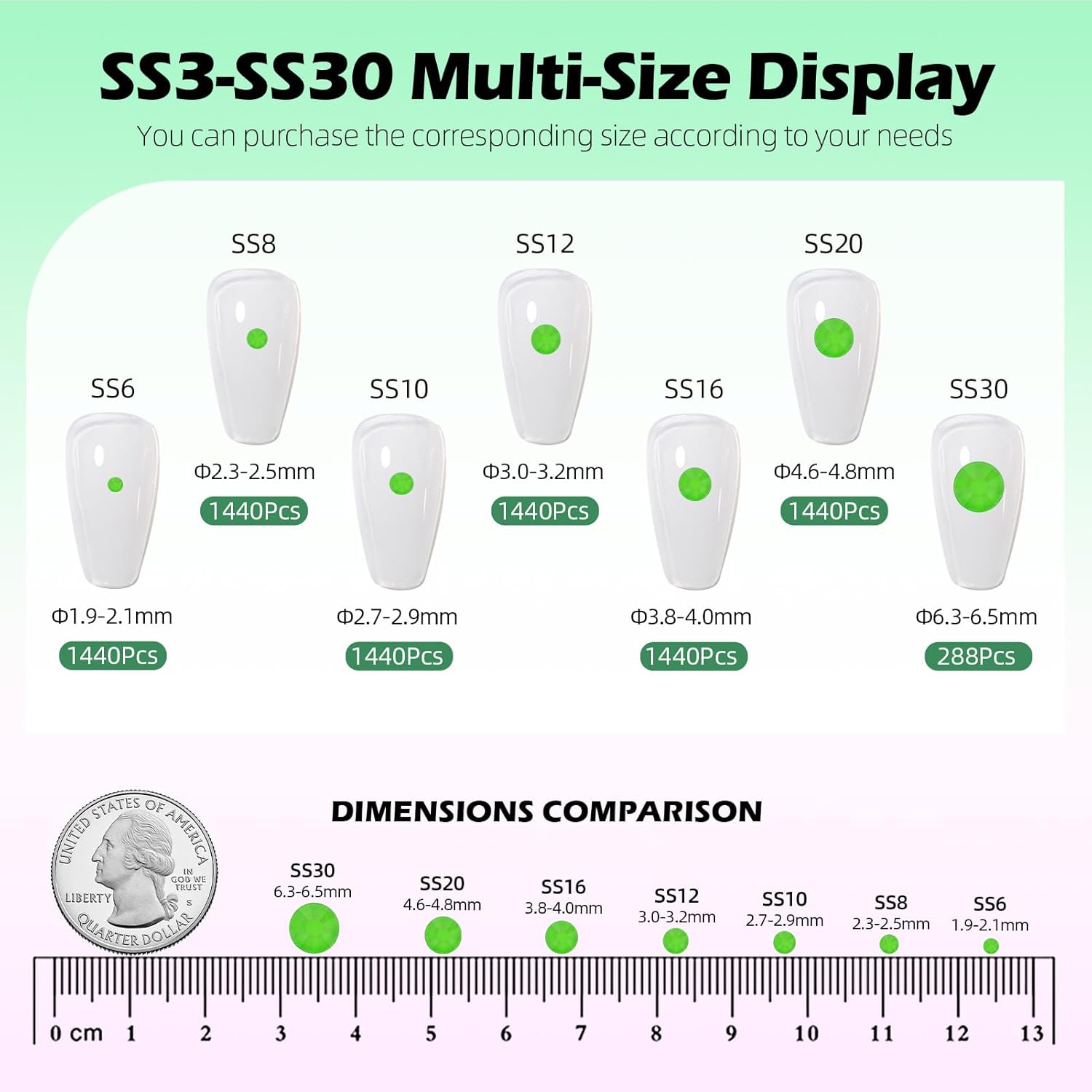 - Material: Glass/Artificial Crystal, Flat Back Round, High-precision cross-section, multi-sided cutting, high brightness, high Sparkly