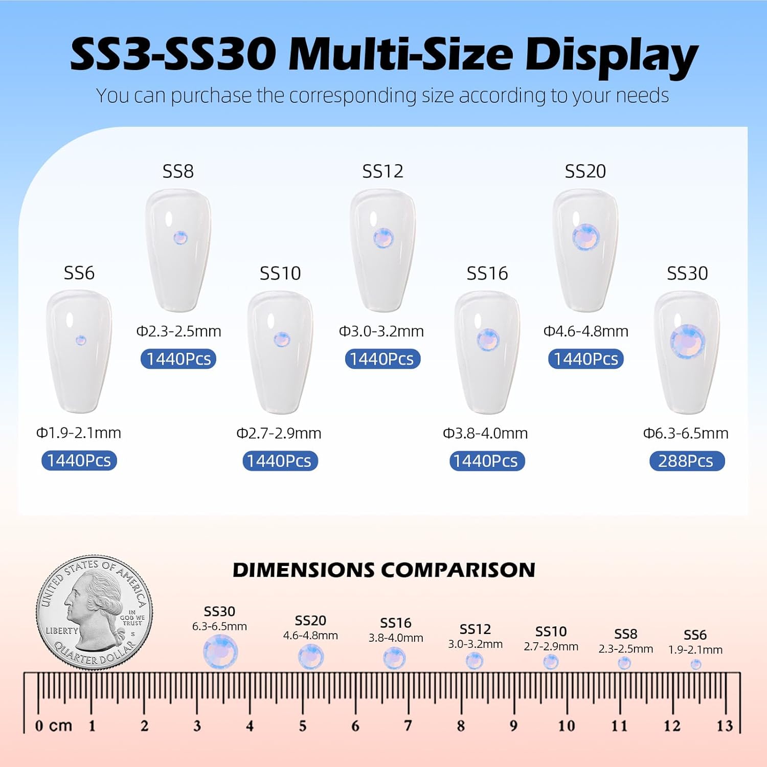 - Material: Glass/Artificial Crystal, Flat Back Round, High-precision cross-section, multi-sided cutting, high brightness, high Sparkly