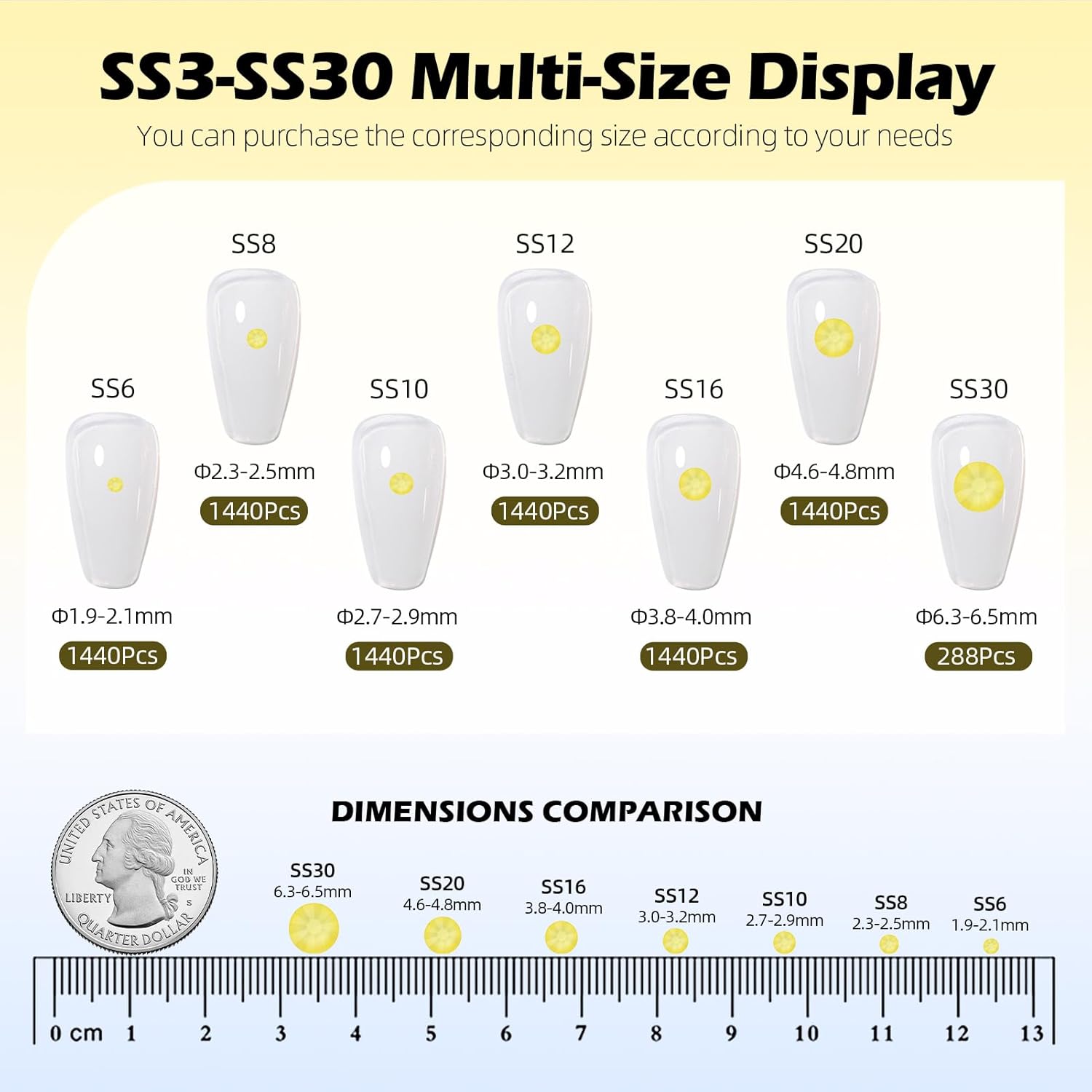 - Material: Glass/Artificial Crystal, Flat Back Round, High-precision cross-section, multi-sided cutting, high brightness, high Sparkly