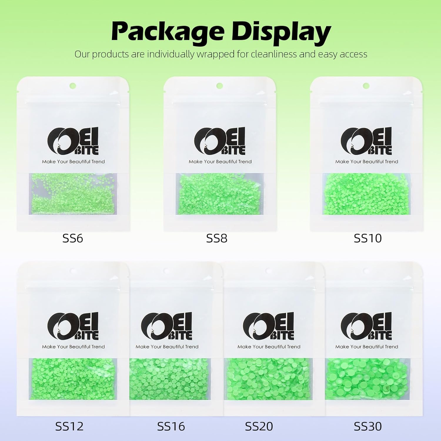 - Product Packaging: Bags packaging SS6 1.9~2.0 MM - 1440 Pcs Mocha Lt.green flatback rhinestones