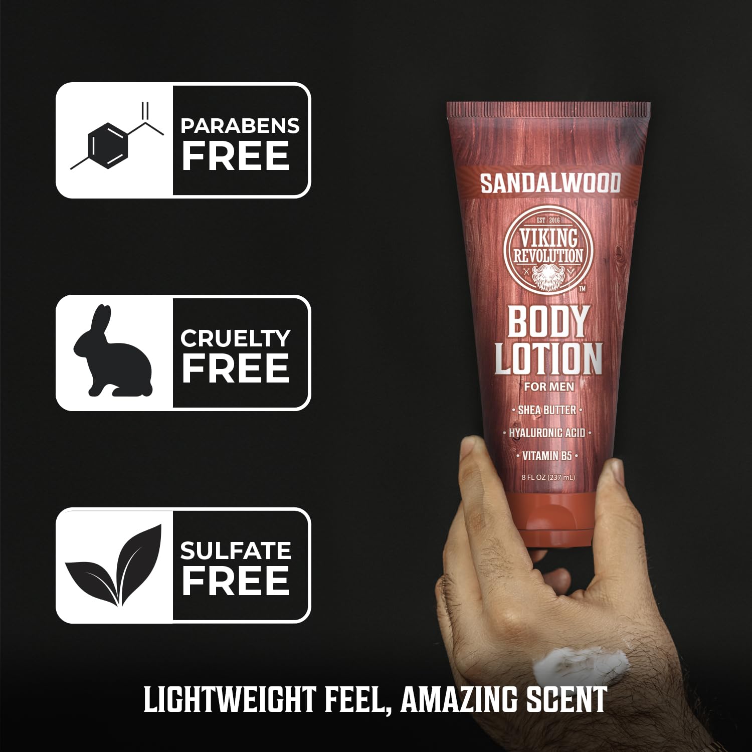 Viking Revolution Sandalwood Body Lotion for Men – Mens Lotion for Dry Skin with Shea Butter, Hyaluronic Acid and Vitamin B5 – Nourishing Mens Body Lotion for Hydrated and Smooth Skin (8oz, 2 Pack)