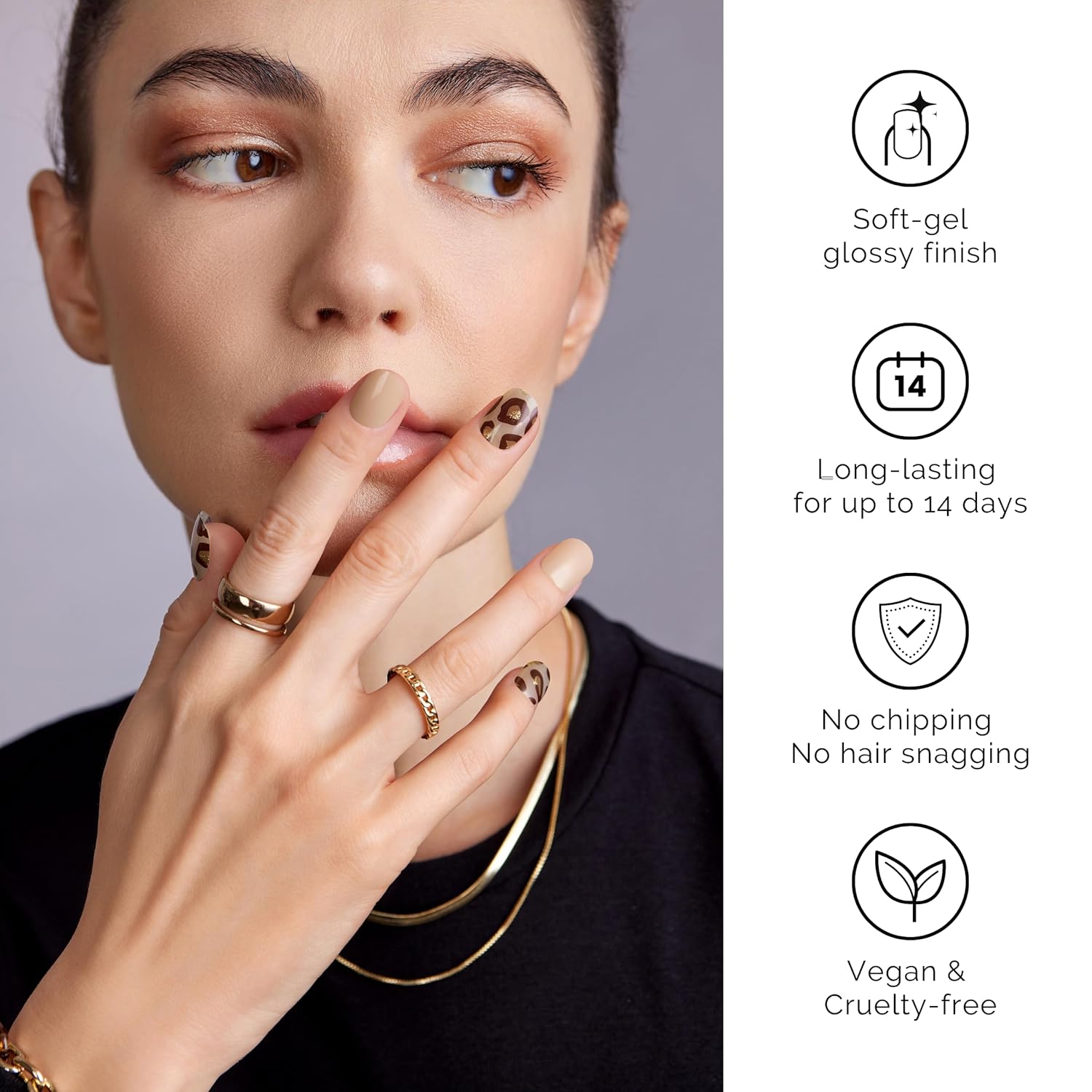 Semi Cured Gel Nail Strips - NAILOG 34 Pcs Gel Nail Stickers | Buy 2 Get 1 UV Light | Extra Long Nail Wraps with Glossy Gel Finishing Brown, Desert Wild