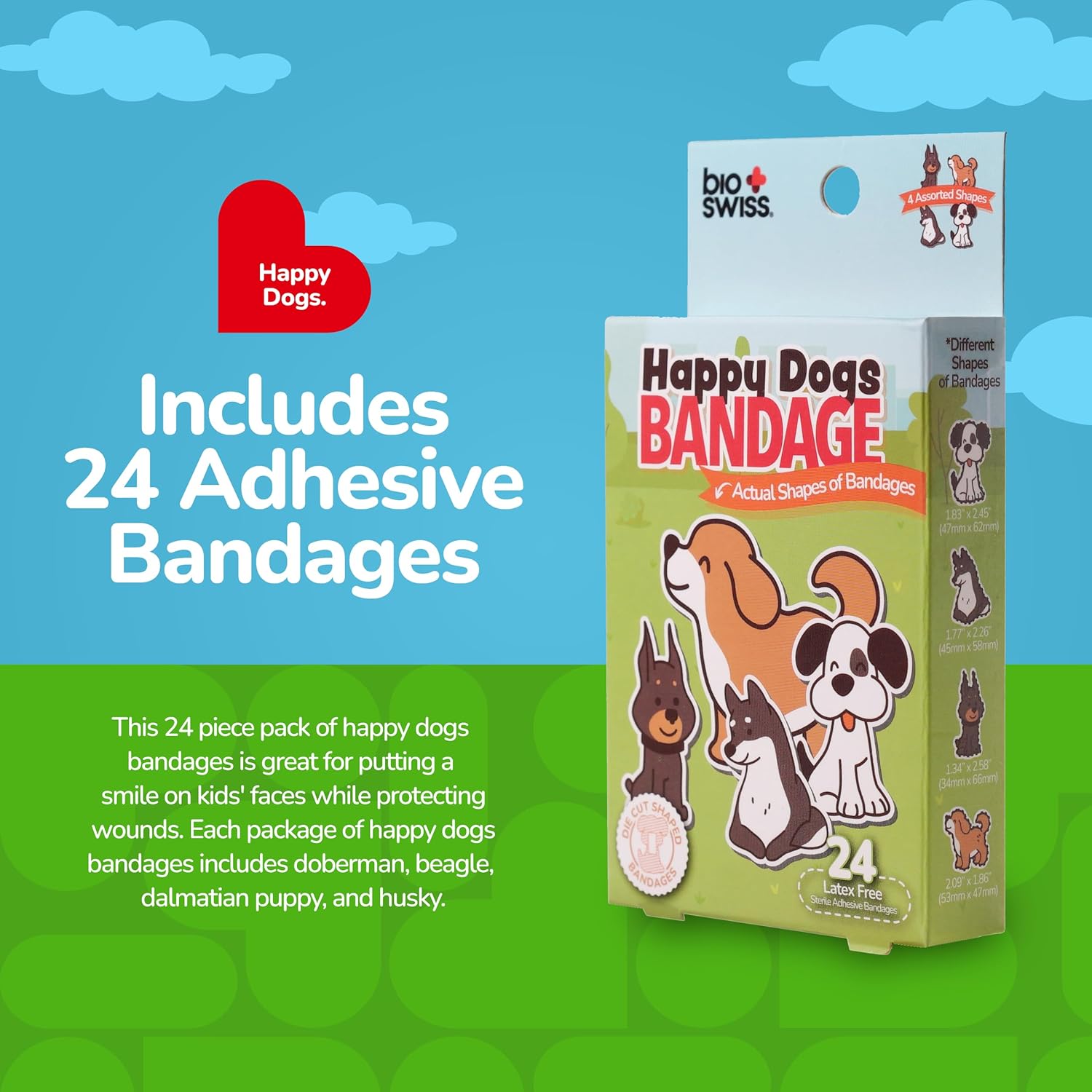 BioSwiss Kids Bandages, Dog Shaped Self Adhesive Bandage Set, Latex Free, Sterile Wound Care, 24 Count