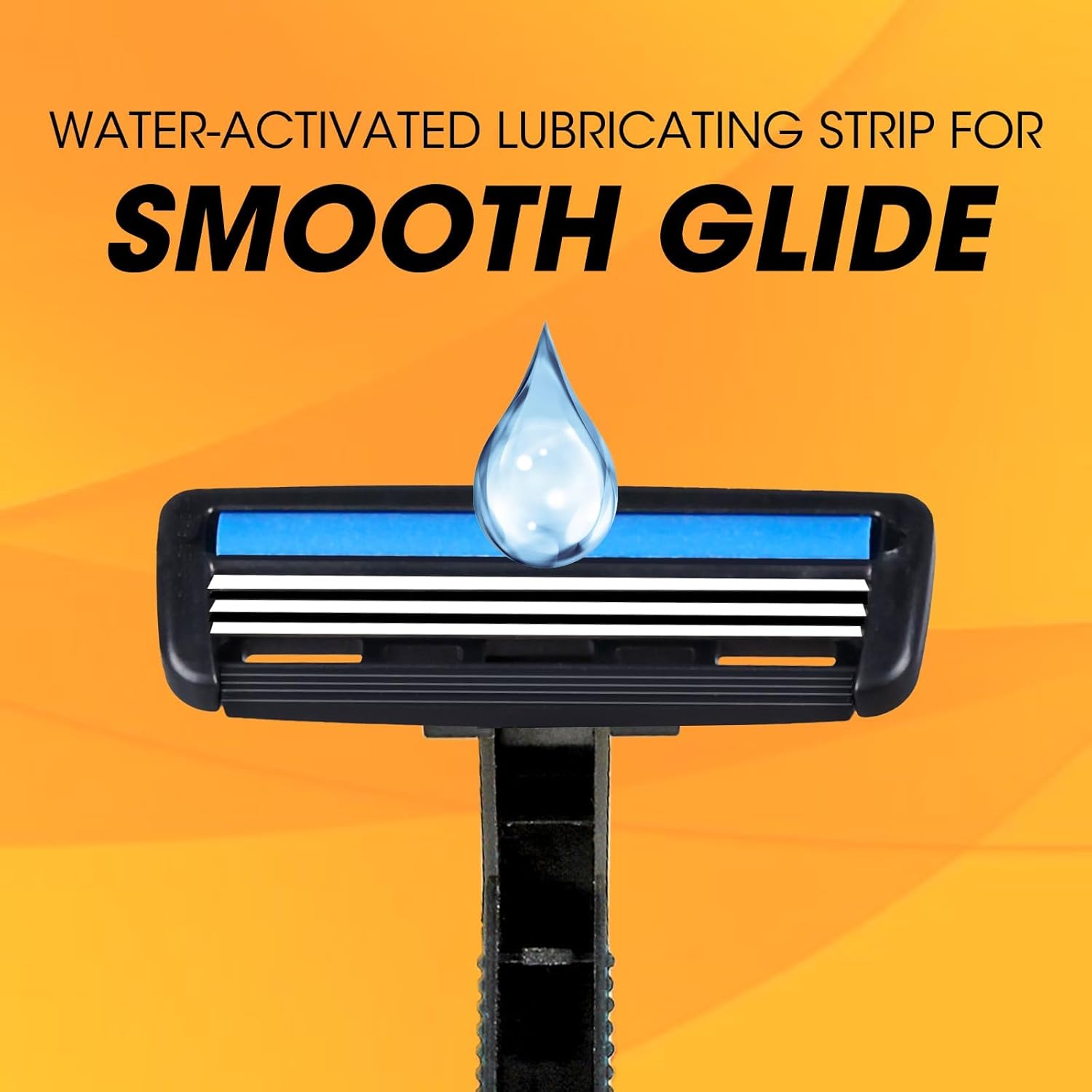 - 【Efficient 3 Blade Design with Protective Covers】These black disposable razors boast a 3 blade design, water-activated lubricating strip for smooth glide, optimizing time and efficiency for a safer, more comfortable shave. The 3 blades, complemented by the provided protective covers, facilitate a closer and smoother shave.