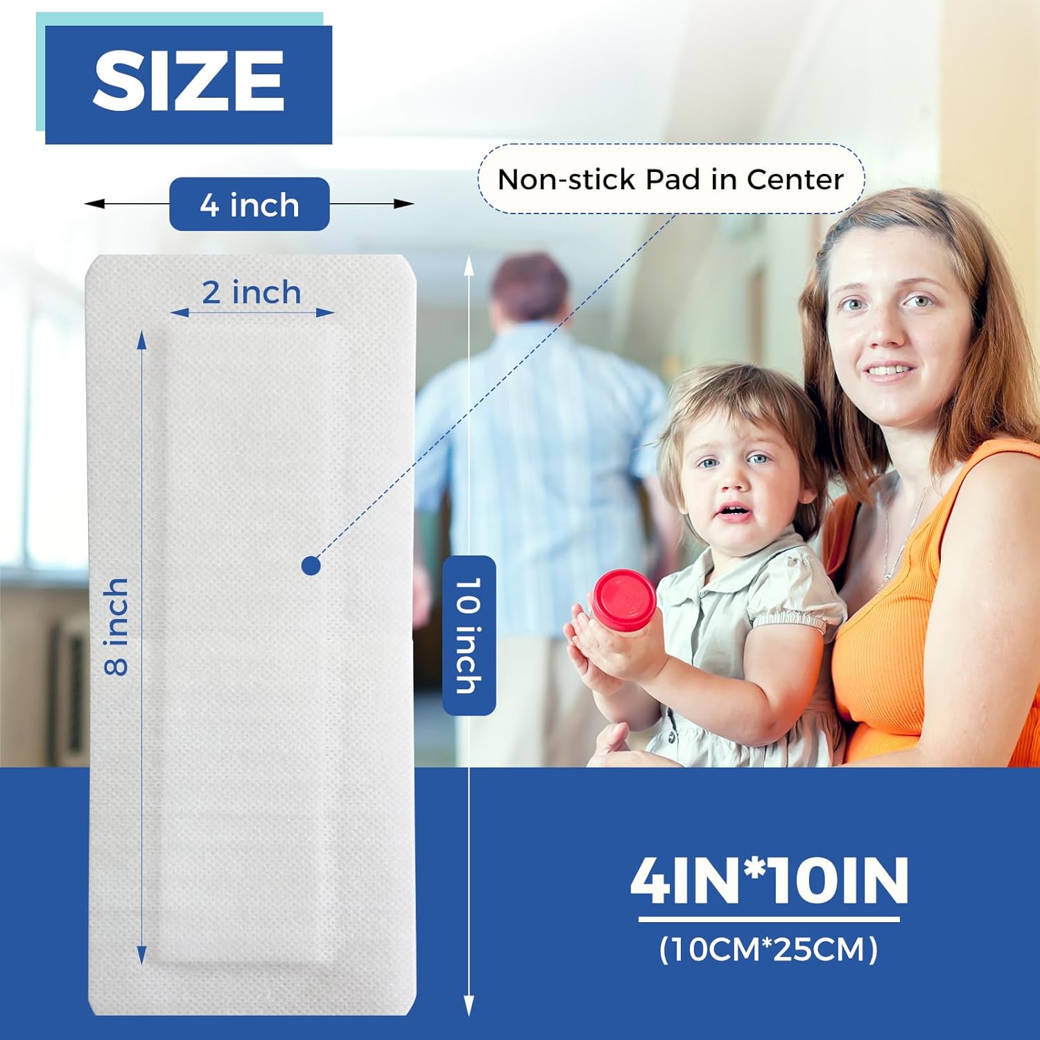 - 【Household Essential】: Island dressing 4"x10 " includes 50 individual sterile Package. Great for daily cuts, scrapes, small wounds, protective sutures, surgical wounds, blisters, leg and foot ulcers and more. Perfect for your home, providing a moist healing environment for your wounds and helping to reduce the likelihood of scarring.