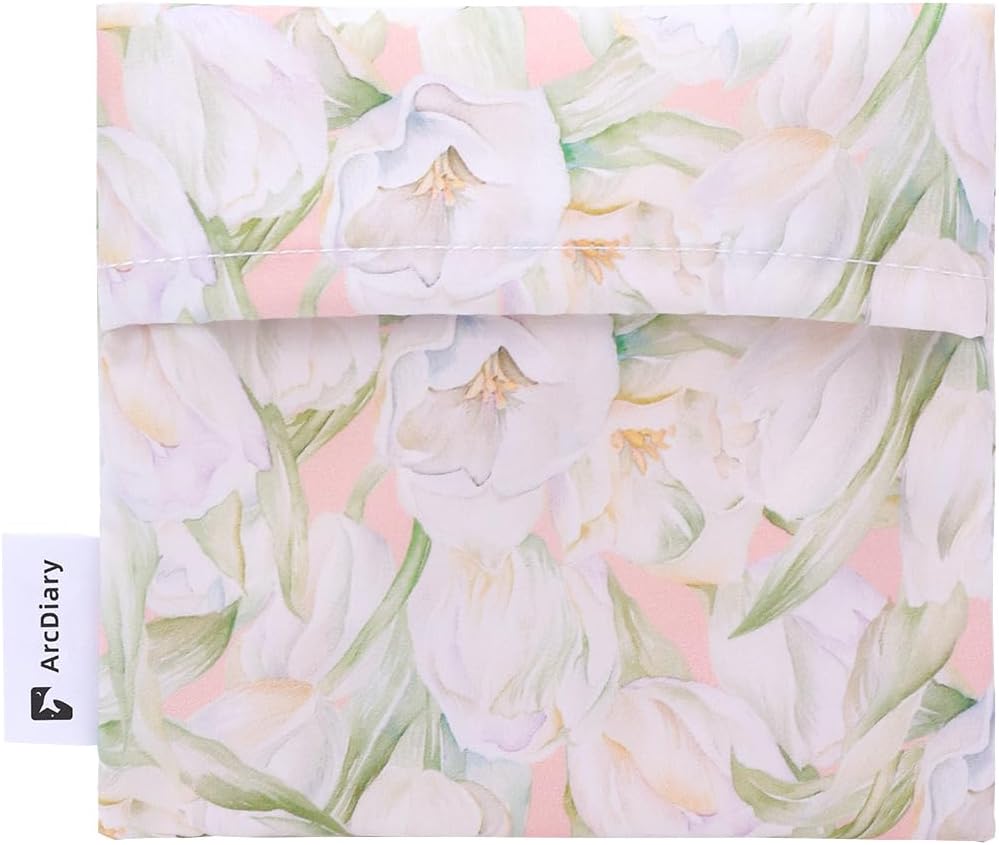 Period Bag for Teen Aged Girls, Portable Sanitary Pad Storage Bag for Teen Pads/Sanitary Napkins/Small Tampons, Feminine Menstrual Cup Pouch (French Tulips)