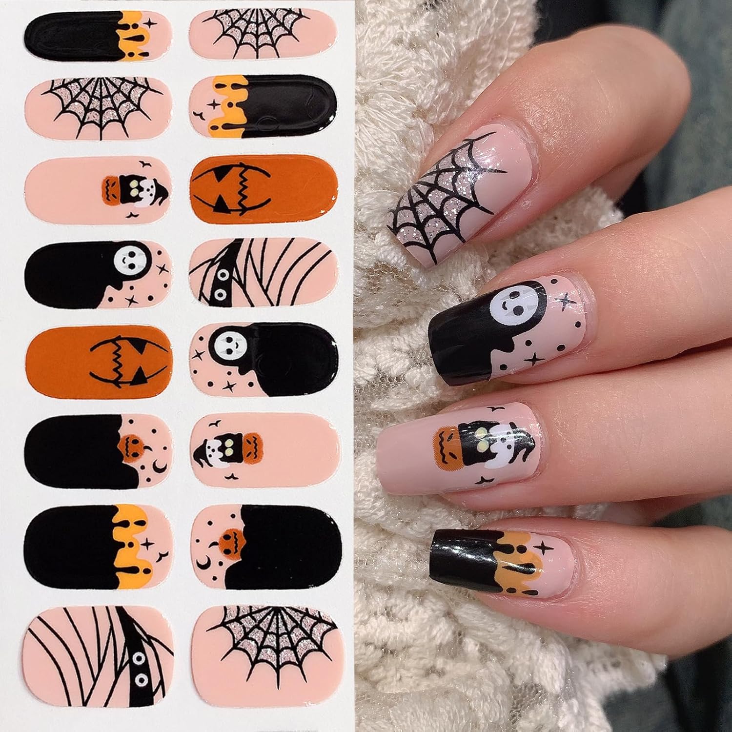 - Halloween Value Pack: You will get 8 sheets Halloween full wraps nail art sticker and 1 piece nail files, rich colors and classic patterns, such as pumpkin bat ghost spider web skull etc. which can offer you multiple choices, satisfy your rich imagination of nail DIY and create your own Halloween.