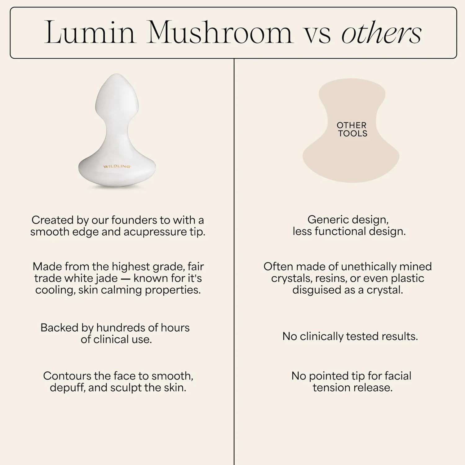 WILDLING Lumin Mushroom | Facial Massage Stone | Made with White Jade | Designed to Cool + De-puff + Calm the Skin | Perfect with Lumin Oil
