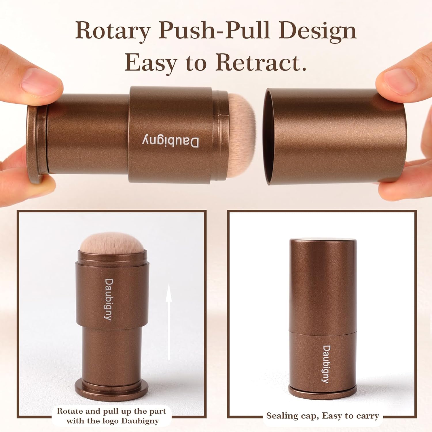 Retractable Kabuki Makeup Brush,Daubigny Powder Brushes Foundation Travel Foundation Brush for Blush Bronzer & Powder (Champagne)