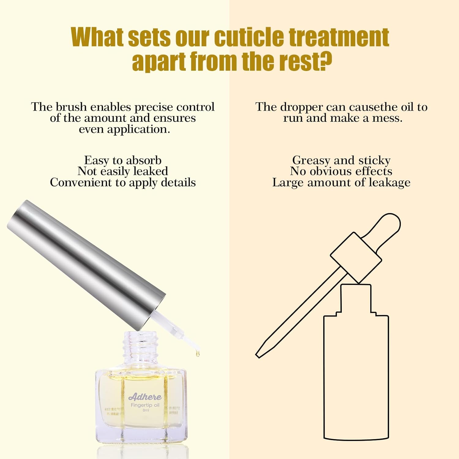 ADHERE Cuticle Oil for Nails Professional Nail Oil 8ML, Jojoba Nail Cuticle Oil Contains Vitamins with Soft Brush, for Nourishing, Hydrating, Dry Rough Nail Care Repair Essential Nail Care