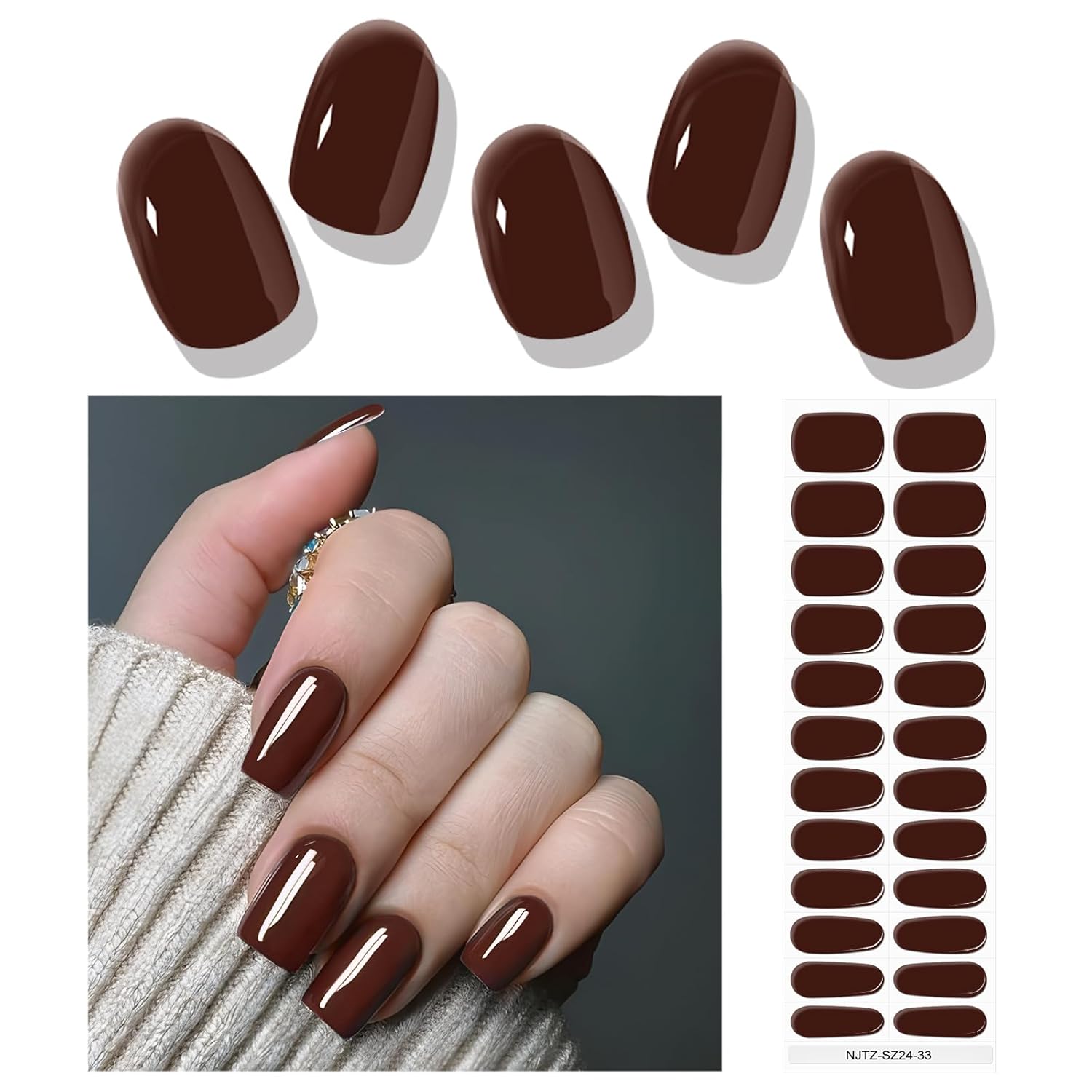 - [Premium Gel Strips] - The chocolate color nail stickers are a classic color and have a stylish and elegant look. EBANKU gel nail stickers are made of real gel nail polish, cured by curing technology. Safe and waterproof material, will not damage your nails.