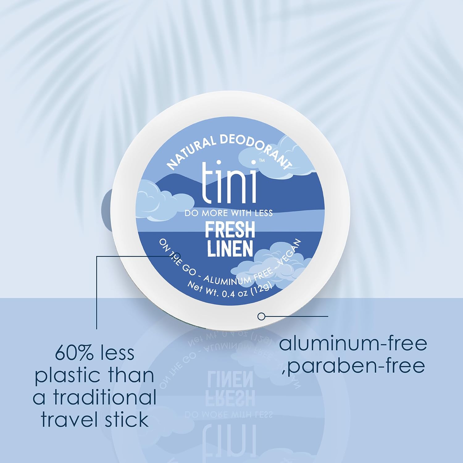 - Innovative design: with 60% less plastic in the container yet the same amount of product than traditional travel-size containers, TINI reduces plastic waste while providing an aluminum free deodorant and natural deodorant.