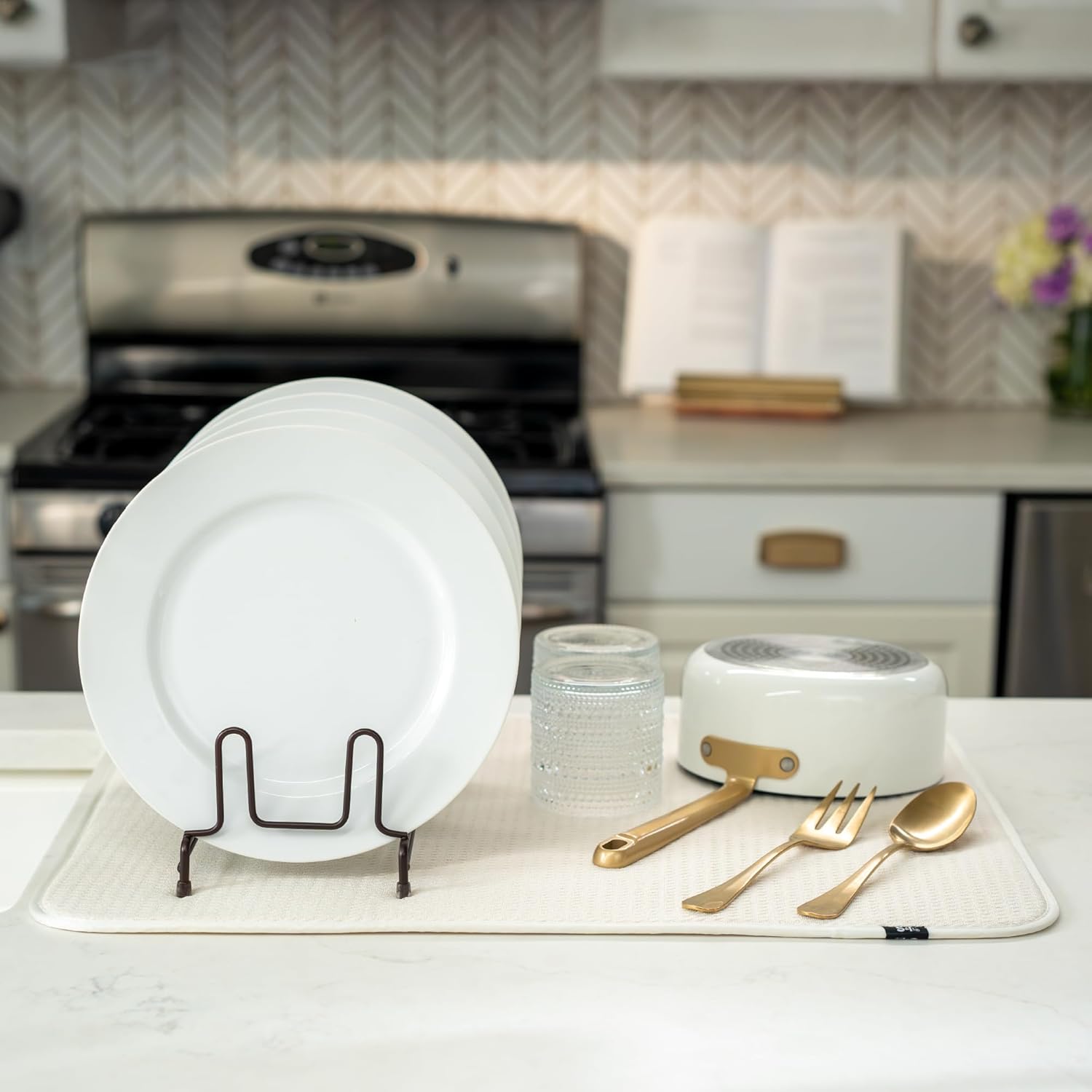 - Dish drying mats for kitchen counter are reusable, machine washable, and easy to store for kitchen organization; durable construction will not chip or break like a stone dish drying mat for kitchen
