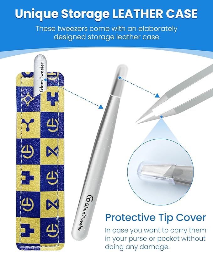 - 【Exclusive TRAVEL-READY Storage case】The GlamTweeler Expert Slant Tip Tweezers come with an elaborately designed storage leather case, which makes it easy and safe to carry in purse or for travel. This elegant storage pouch not only protects the tip's sharpness but also helps prevent accidental damage when not in use, very useful and convenient.