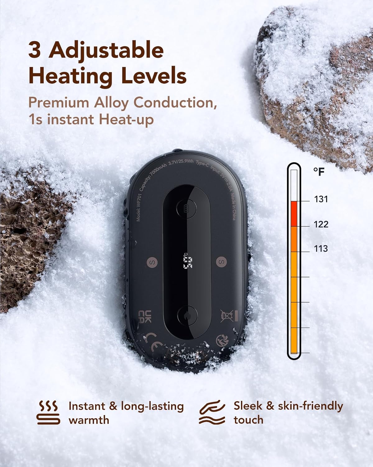 - 3-Level Adjustable & Longer Lasting Warmth: WeeFancy rechargeable hand warmer supports 3 adjustable heating levels up to 131°F to meet different needs. With a larger 7000mAh battery capacity, it provides you with up to 8~16 hours of warmth during the cold days. The included Type-C charging cable can quickly charge the hand warmer in 4 hours