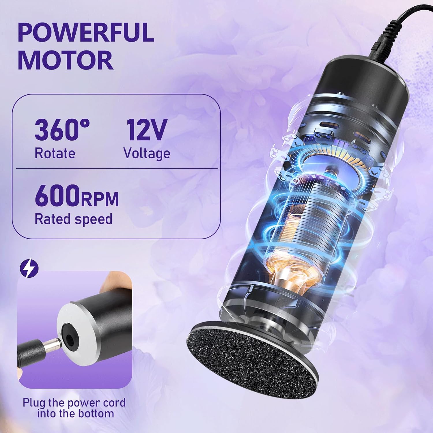 - 【ADJUSTABLE SPEED】:The electric callus remover has adjustable speeds (0-500 rpm), you can adjust the right speed to remove callus on your feet. The foot grinder can also change the direction forwards and backwards, it can rotate 360 degrees.bringing you a portable and free using callus removal experience