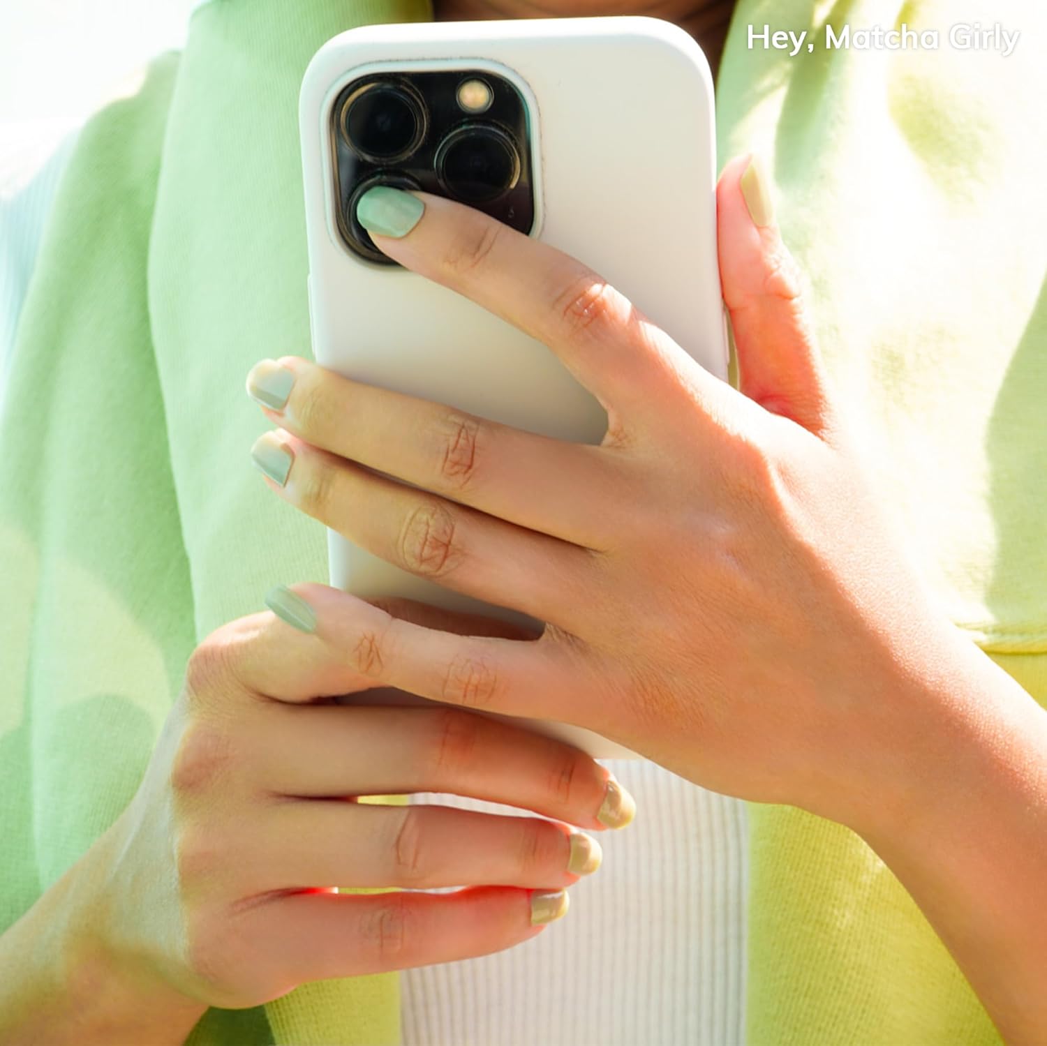 Semi Cured Gel Nail Strips | No LED Lamp Needed | Solid, Green, Spring | Easy Apply & Remove, Salon Quality | Includes 28 Strips, 1 Prep Pads, Nail File & Wooden Stick - Hey, Matcha Girly