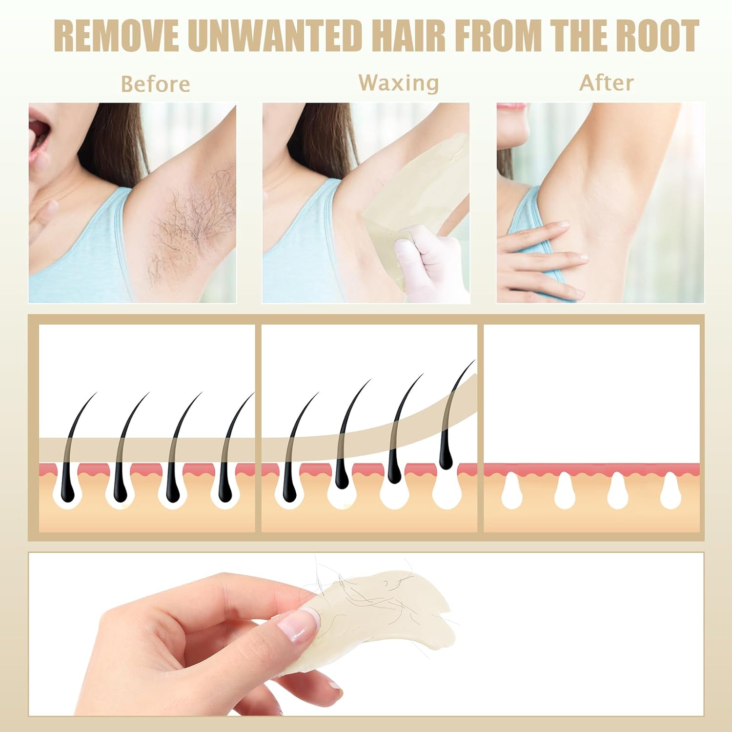 - 【Save Time & Money, Long-Lasting Results】Our brazilian wax kits are suitable for women and men for full body hair removal, including but not limited to the face, eyebrows, lips, arms, underarms, chest, bikini, and legs. Waxing hair removal extracts the hair from the root, thus slowing down the growth. Enjoy 3-6 weeks of smooth, hairless skin for a fraction of the cost.