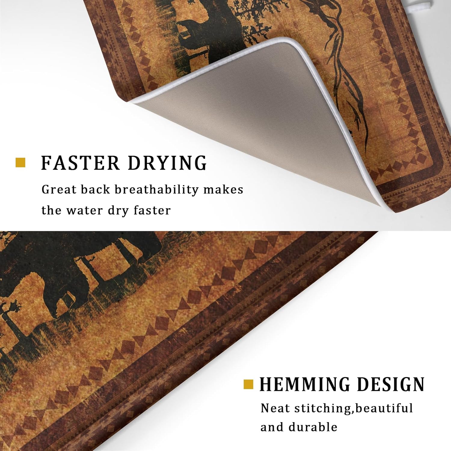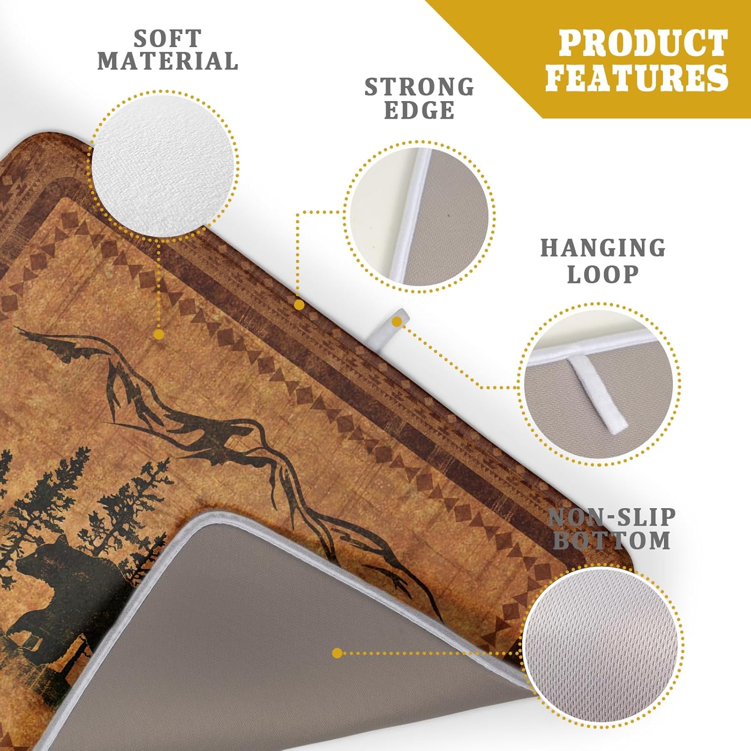 Forest Bear Dish Drying Mat 18x24 Inch Rustic Cabin Washable Microfiber Absorbent Dishes Drainer Rack Pad for Kitchen Counter Home Decor