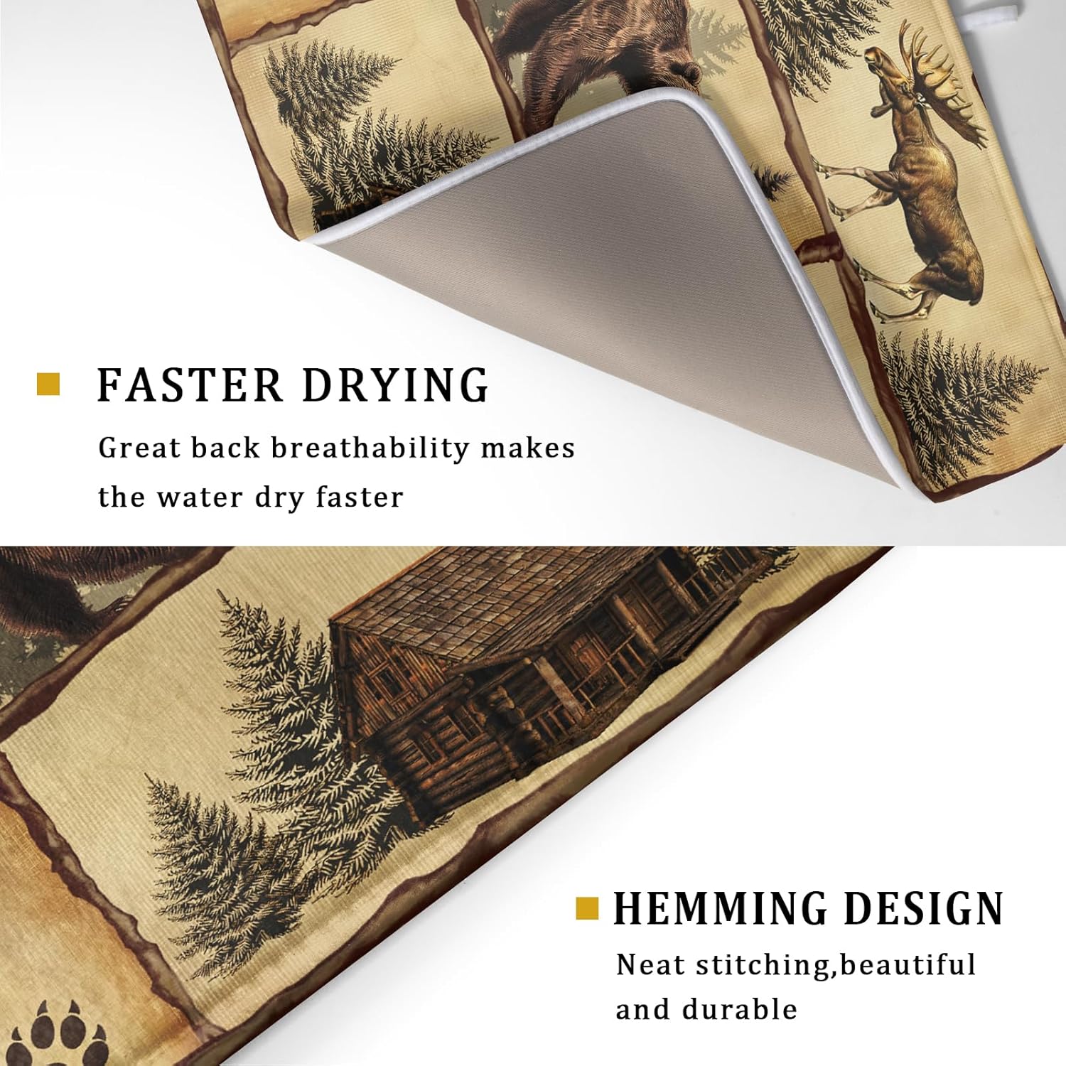 Vintage Bear Moose Dish Drying Mat 18x24 Inch Country Cabin Absorbent Dish Draining Mat Heat Resistant Drying Pad for Counter Sink Home