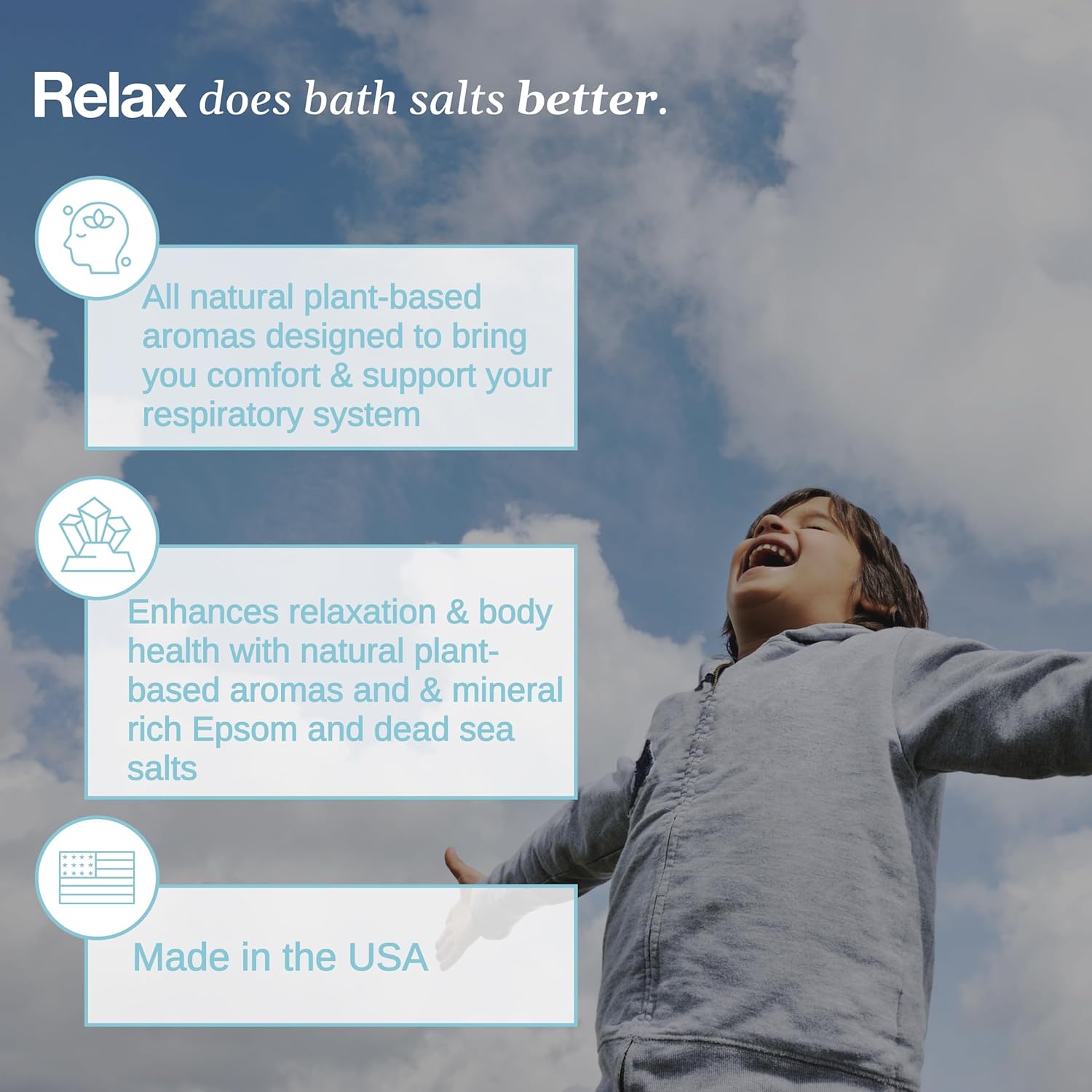 Relax Spa & Bath, Epsom & Dead Sea Salts, Aromatherapy Bath Salts for Hot Tub, Bath, or Spa, Infused with Magnesium, Respiratory Therapy