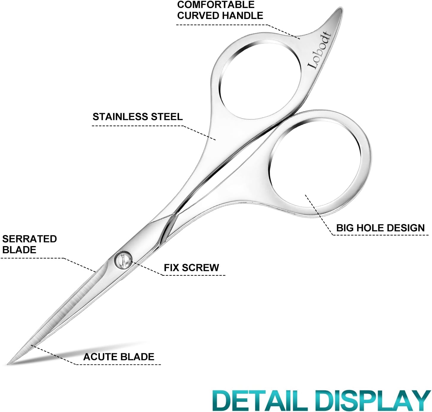 - [Sharp Detail Scissors] : With slender blades, it is easy to trim in narrow areas. The sharp blades can cut hair in an instant, making it very suitable for trimming eyebrows, eyelashes, beards, ear/nose hair, facial hair, and personal care. Be careful not to scratch your skin when using. Please keep it out of the reach of children to avoid sharp injuries.