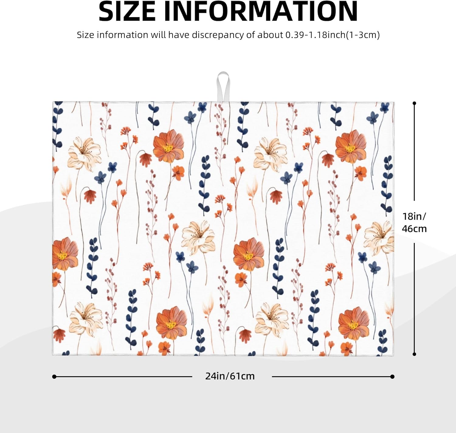 Orange Flower Decorative Dish Drying Mat for Kitchen Counter Watercolor Orange Floral Drying Pad 18x24 Inch Modern Absorbent Reversible Dish Drainer Rack Mats