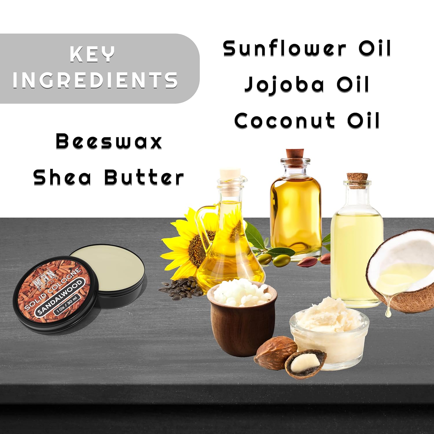 Solid Cologne Men's Sandalwood Cologne for Men, Wax Sandalwood Perfume, Solid Perfume with a Sandalwood Men's Fragrance (1 Ounce, Sandalwood Men's Cologne Balm)