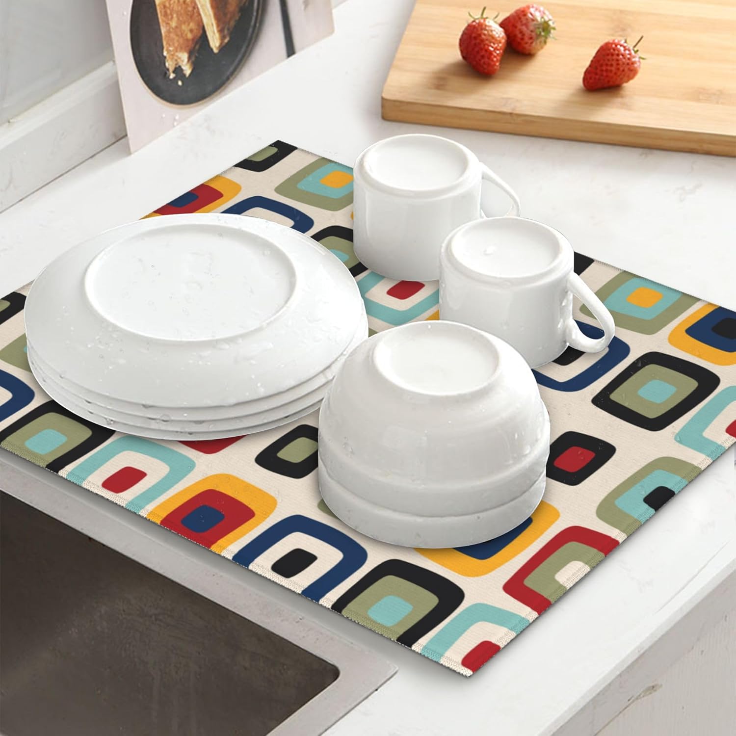 Mid Century Modern Retro Kitchen Drying Mat Microfiber Dish Drainer Mat for Kitchen Counter Absorbent Reusable Washable Vintage Decorative Drying Pad 16x18 Inch