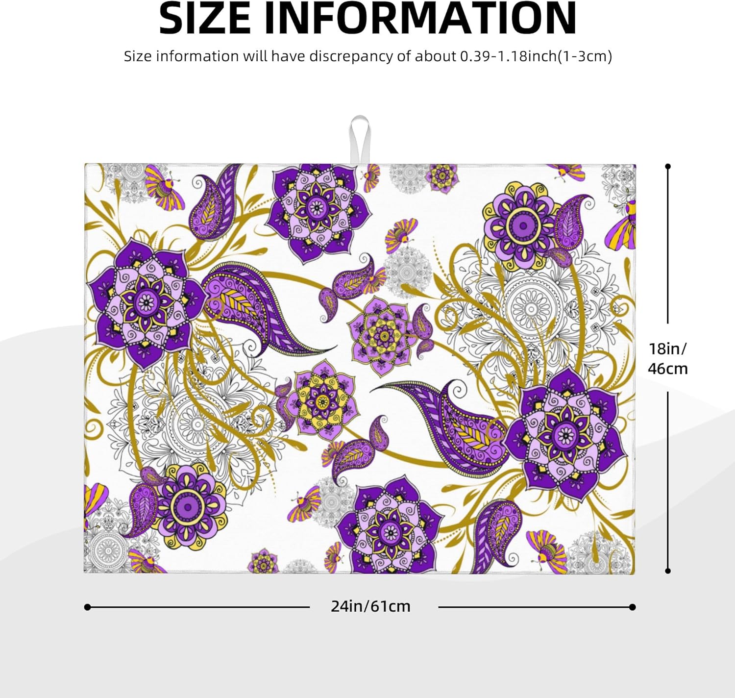 Purple Flower Kitchen Drying Mat Boho Floral Microfiber Dish Drainer Mat for Kitchen Counter Absorbent Reusable Washable 18x24 Inch Home Holiday Decor