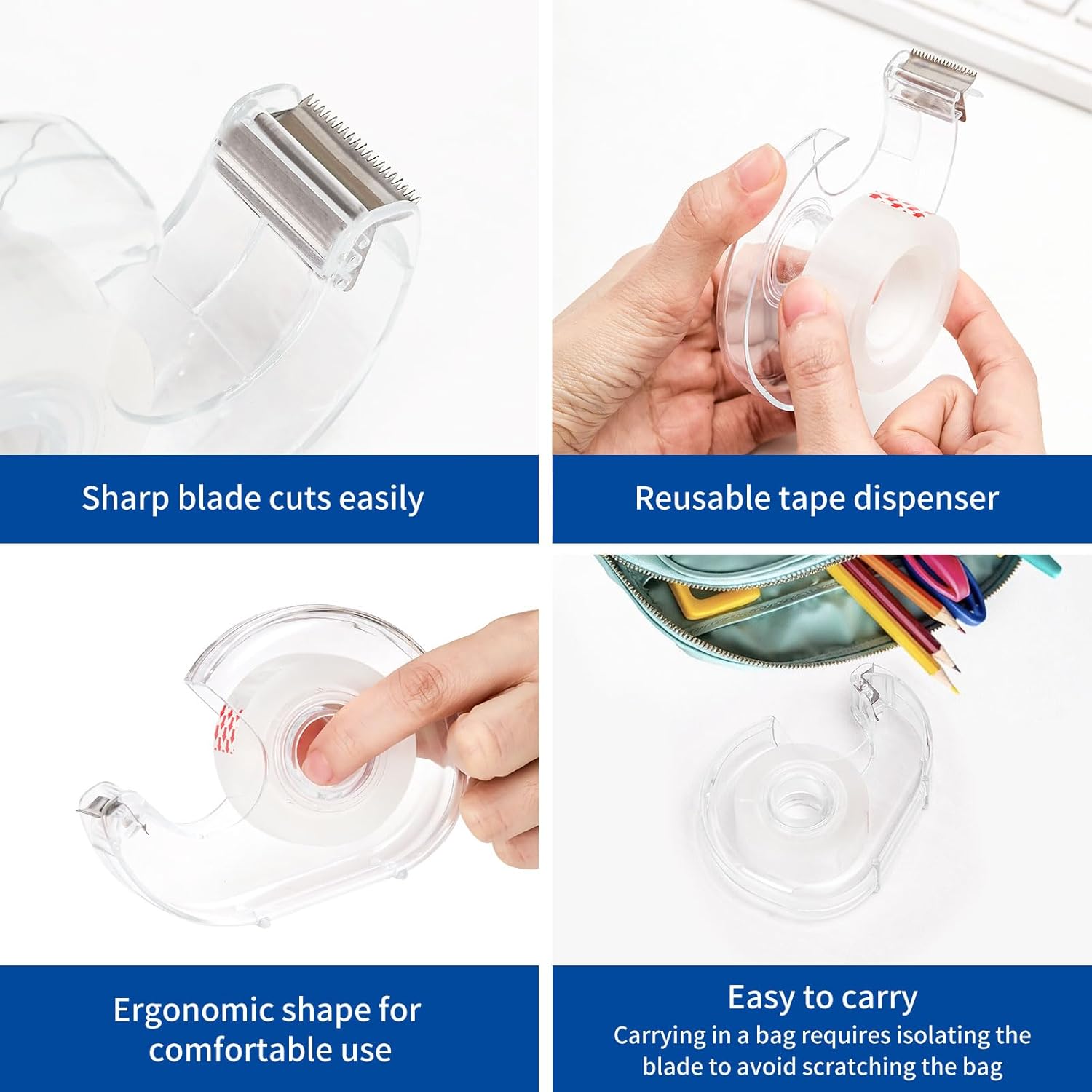 - PORTABLE SIZE: The compact small tape dispenser size is only 4.02 x 2.95 x 0.98 inches, which is easy to carry and does not occupy desktop space.