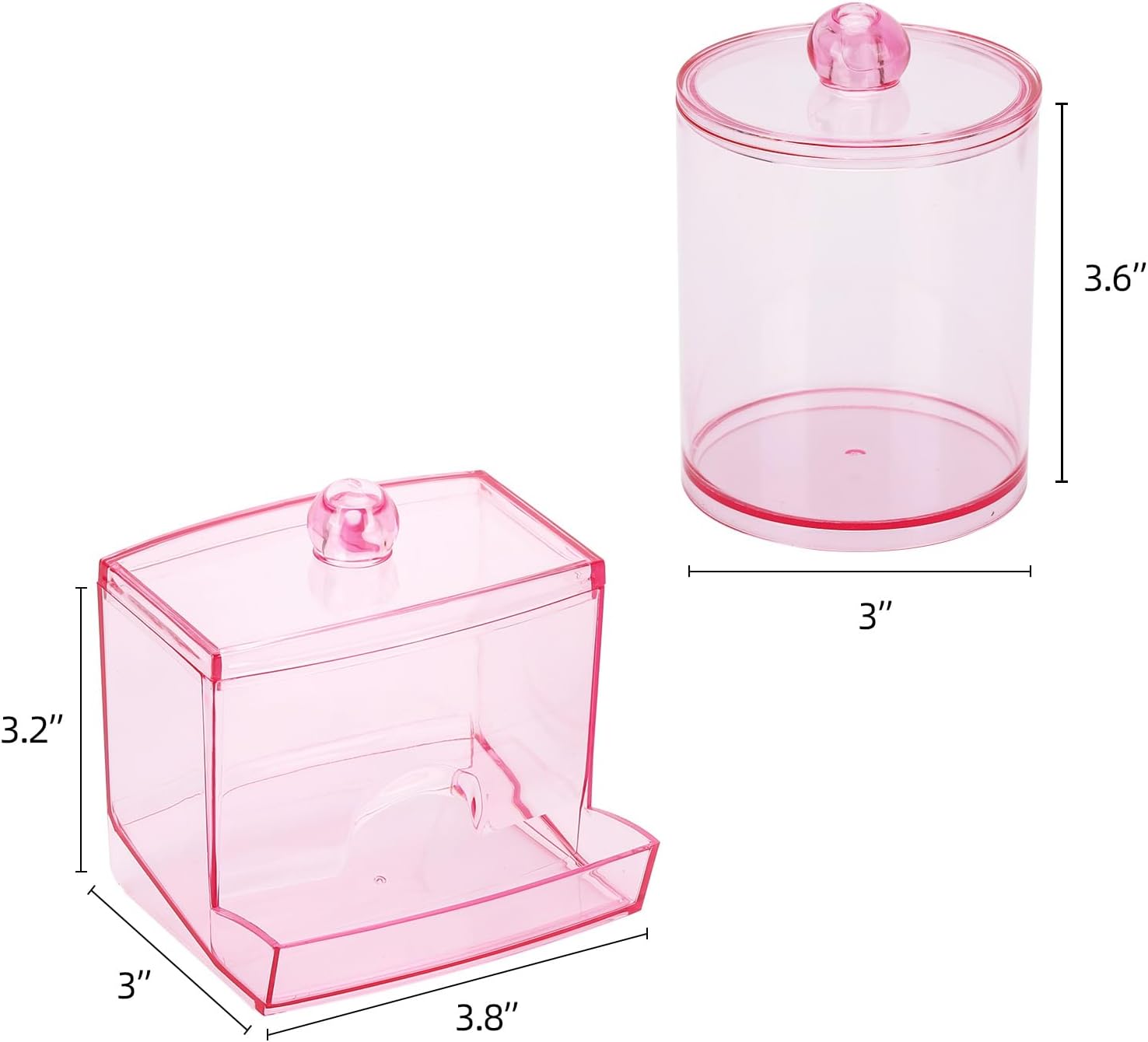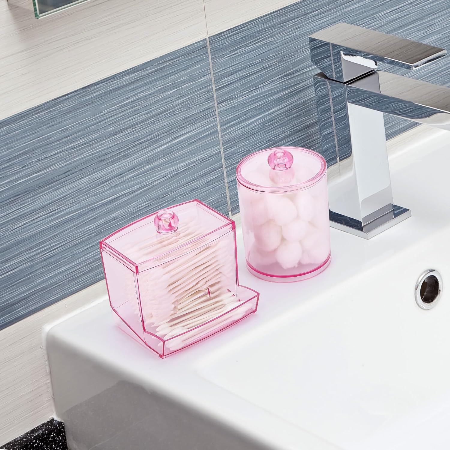 Tbestmax Qtips Dispenser, 10/12 oz Big Cotton Ball Holder Bathroom Container,Plastic Apothecary Jar Organizer for Storage Cotton Swab, Cotton Round Pads, Floss Picks - Pink