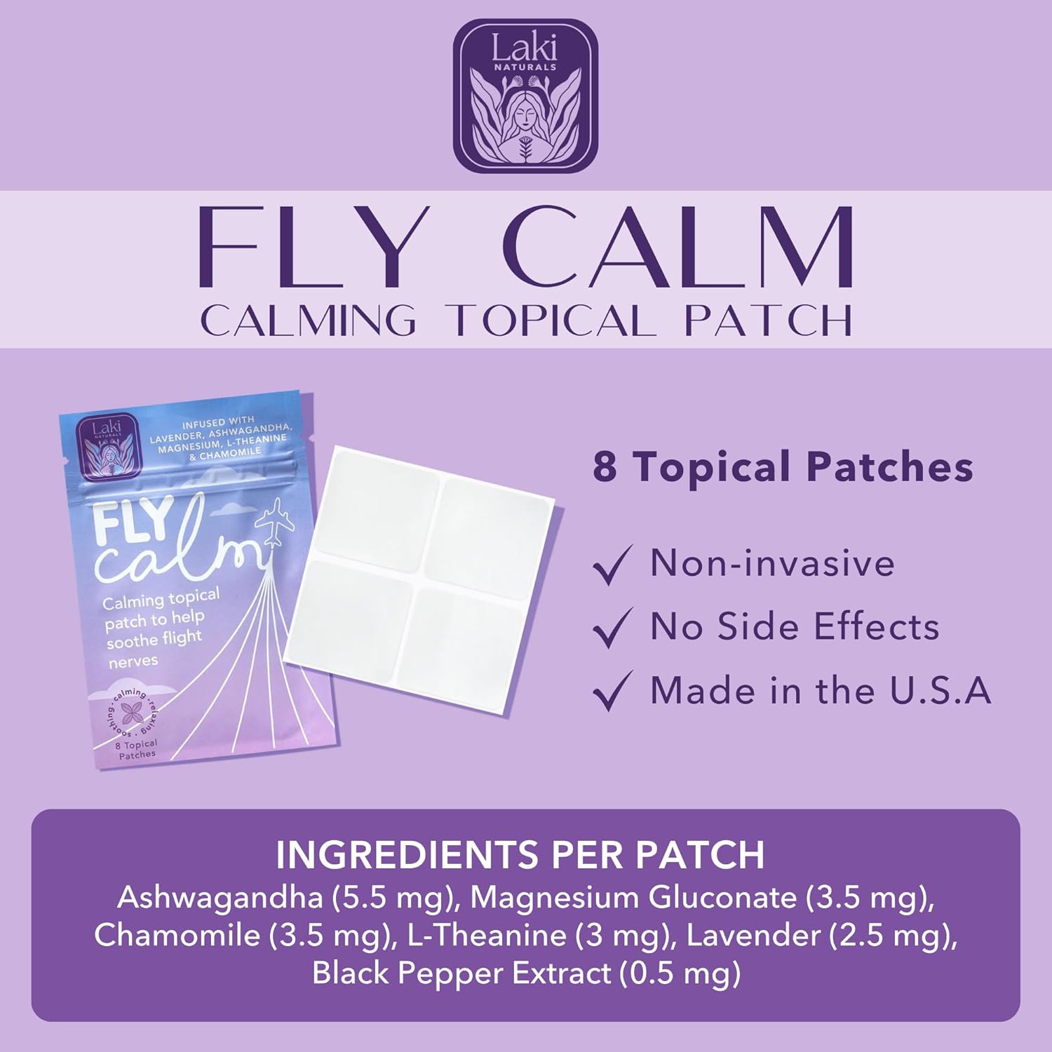 Laki Naturals Fly Calm Patch (2-Pack, 8 per Pack) | Plant-Based Ingredients for Air Travel Stress | Calm Your Fear of Flying