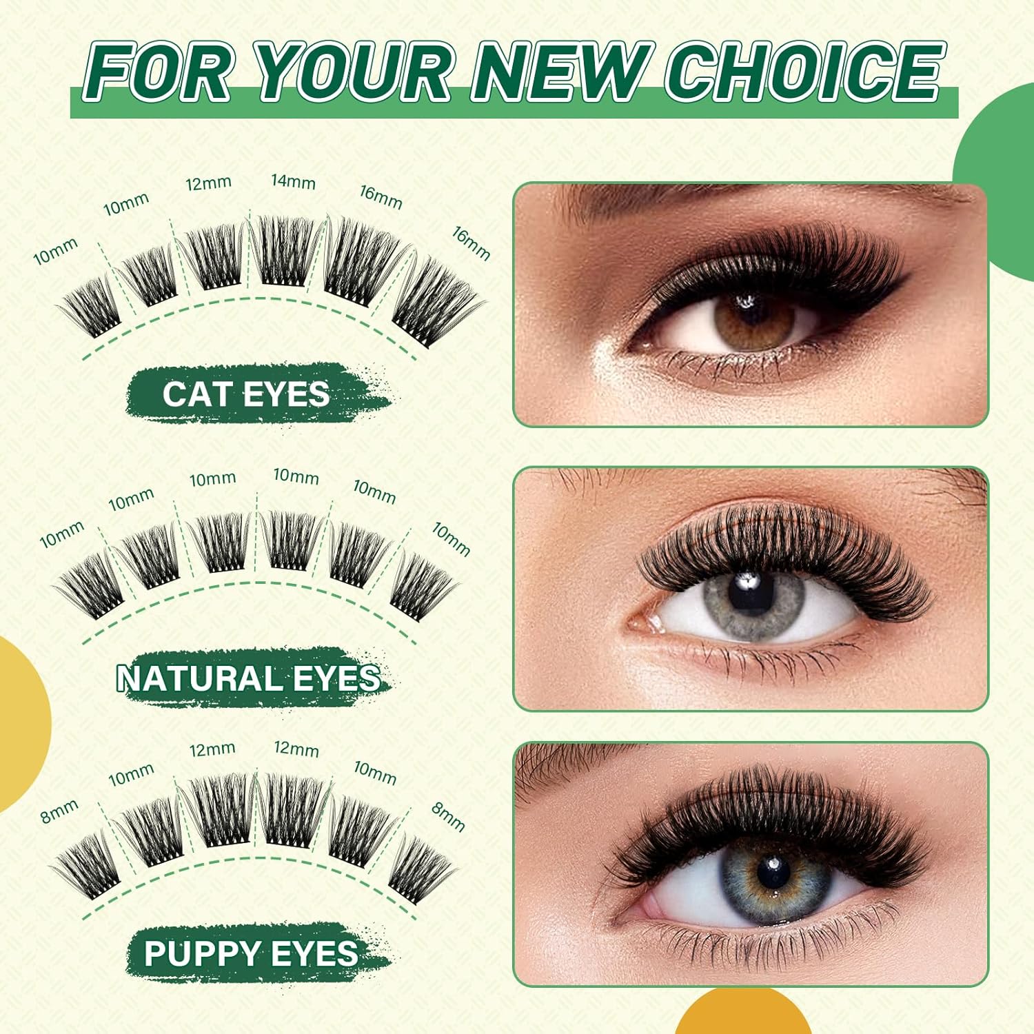 - 【144pcs High Quality Cluster Lashes】The simulated eyelash material is more realistic and will not feel plastic, comfortable and non-irritating on the eyes, allowing you to easily maintain a perfect makeup all day long.