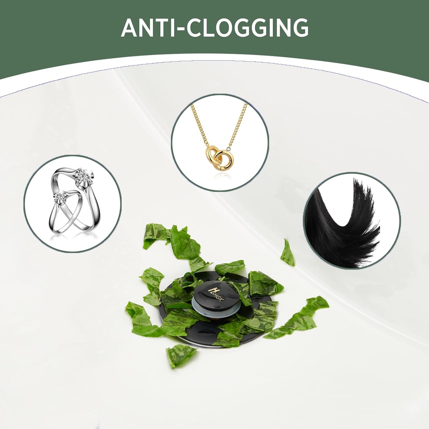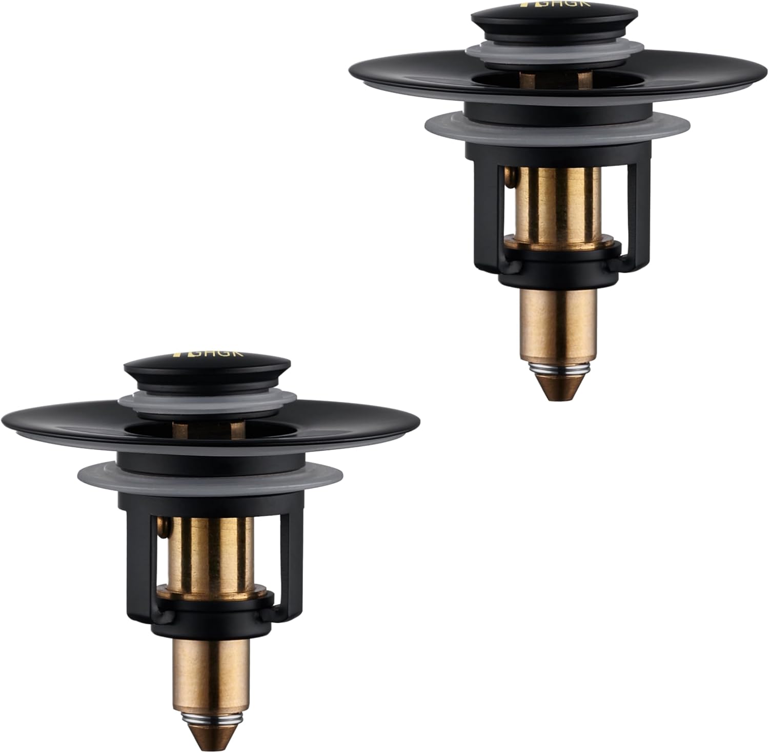 Universal Bathroom Sink Stopper - 2 Pack Matte Black Pop Up Drain Stopper for 1.06"-1.65" Basin Drain Holes,Anti Clogging Bathroom Sink Drain Strainers with Hair Catcher
