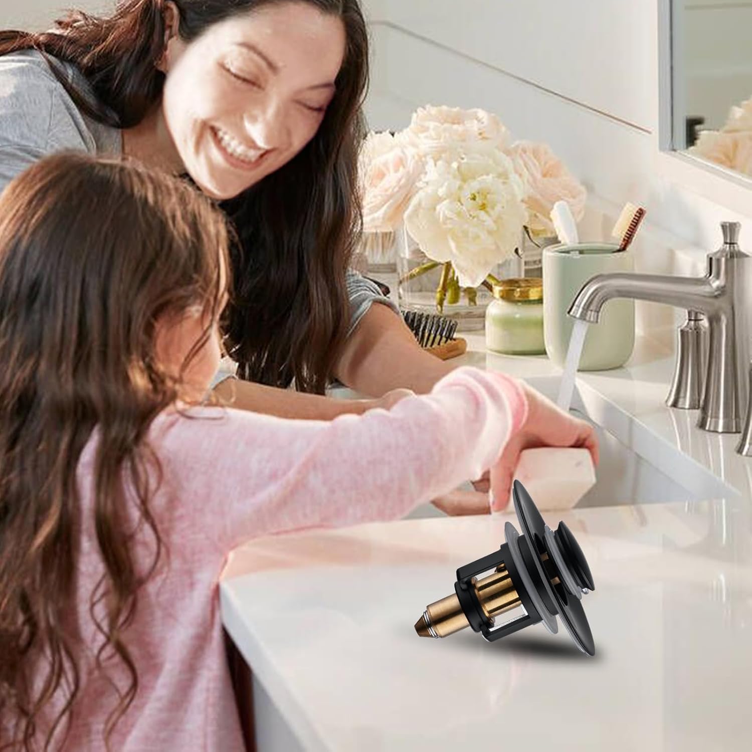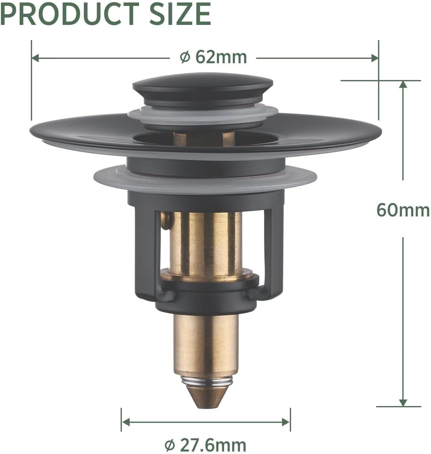 - Versatile 2-in-1 Bathroom Sink Stopper - This sink drain plug features a sleek bullet core design that seals and drains water with a single press, ensuring fast and convenient operation. Equipped with a thickened silicone gasket, it prevents sewer odors, allowing you to enjoy fresh air at home. Additionally, it effectively catches hair and debris, eliminating worries about clogs and simplifying your cleaning routine.