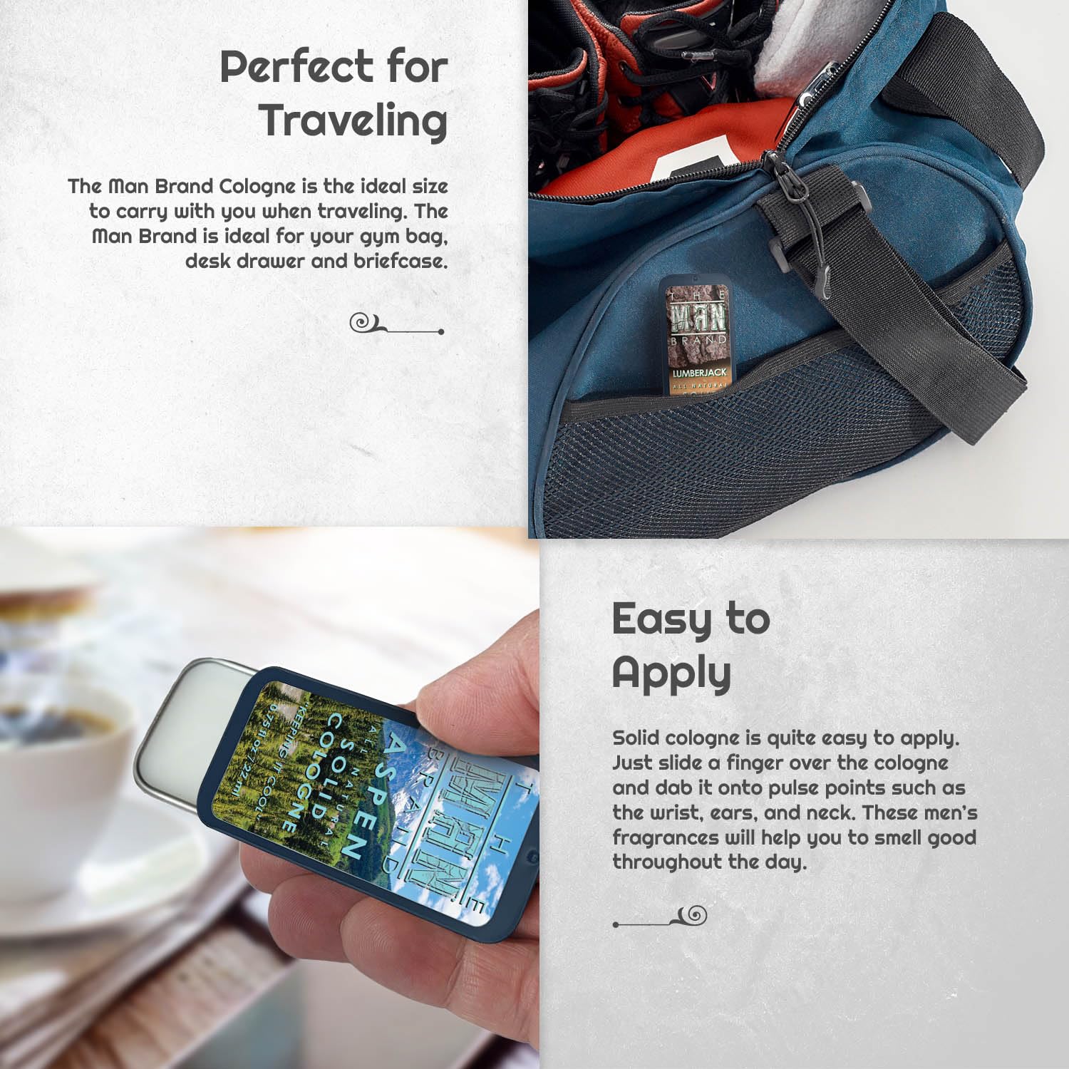 - Boosted Confidence and Masculine Appeal: Solid men’s cologne isn't just about smelling good; it's about feeling confident with our carefully curated fragrance for men.
