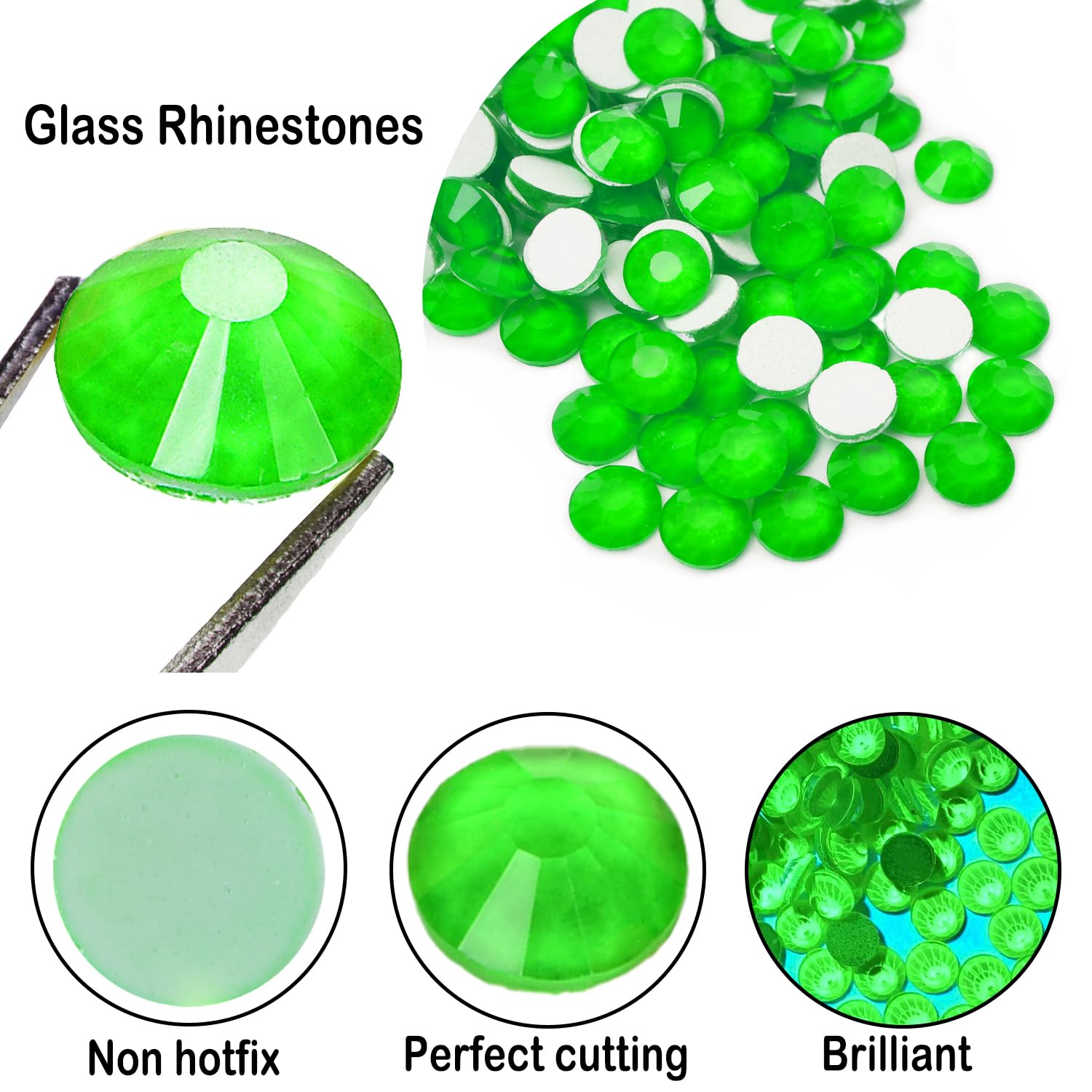 Flatback Glass Rhinestones,Bedazzler Gems 288pcs Non Hotfix Crystal Rhinestones for Nail Charms Crafts Clothes Tumblers,Green Neon,SS30