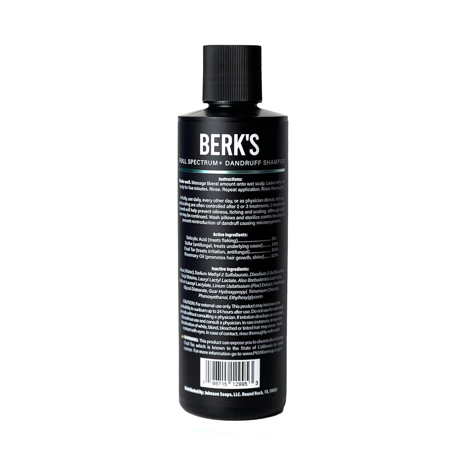 Berk's Full Spectrum Dandruff Shampoo with Coal Tar, Salicylic Acid, Sulfur, and Rosemary Oil, 8 Fl Oz