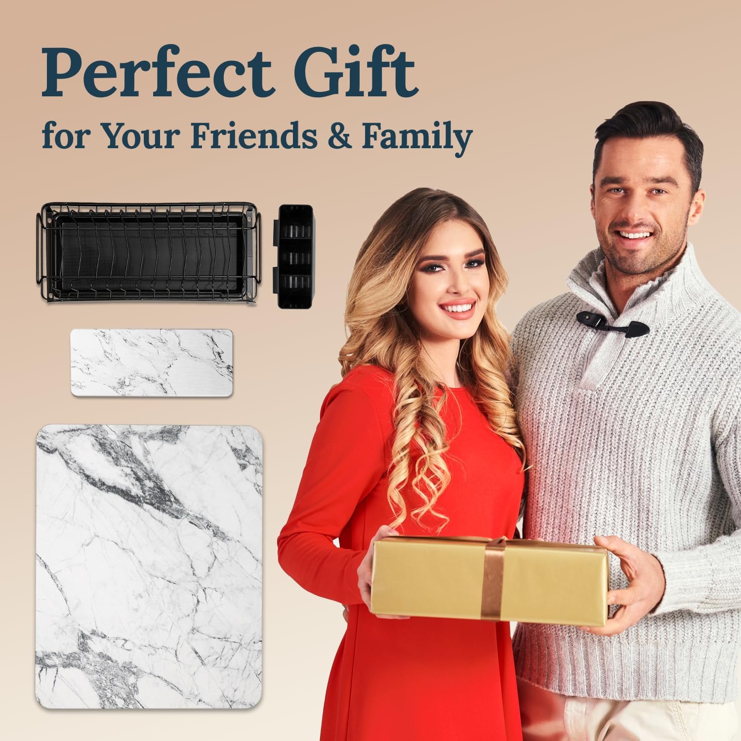 - 𝗘𝗟𝗘𝗚𝗔𝗡𝗧 & 𝗔𝗘𝗦𝗧𝗛𝗘𝗧𝗜𝗖 Transform your space with AquaTerra's stone drying mat for the kitchen counter and carbon steel rack. The sleek marble-like design offers a modern touch, elevating your countertop decor while ensuring ultimate functionality for busy kitchens.