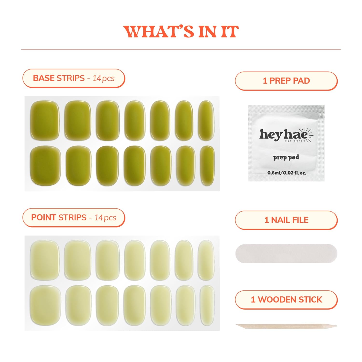 - Enjoy a complete package of fresh salon quality nails done at ease everywhere and anywhere you go! Package includes: 28 strips, 1 Prep pad, 1 Nail file, & 1 Wooden stick.