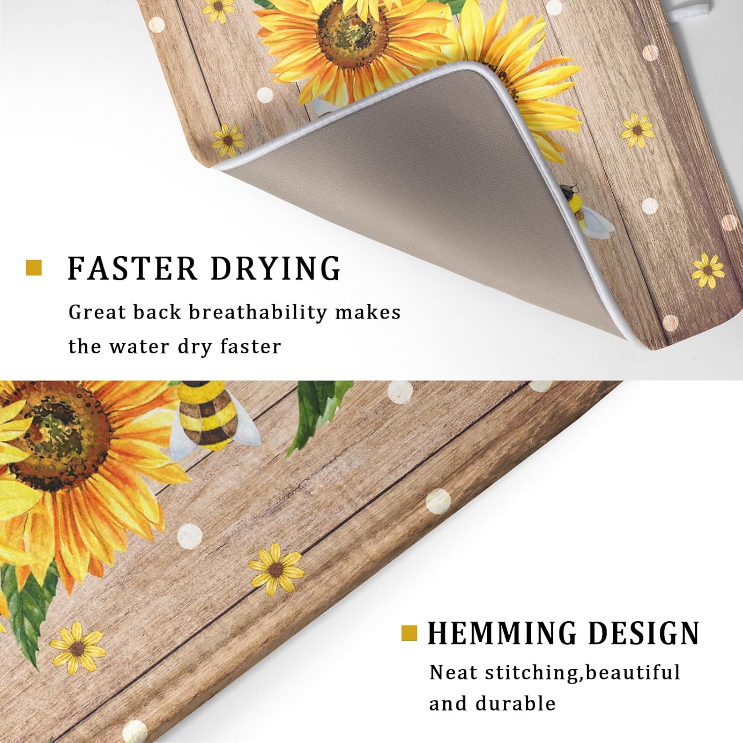 - 【Protect Tableware】Place your dishes on it or under dish racks, the yellow sunflower dish mat prevents bowls, glassware, and more tablewares from being scratched or worn, can be used as dish drying mat, sink mat, dishes drainer mats to keep the countertop dry and tidy.