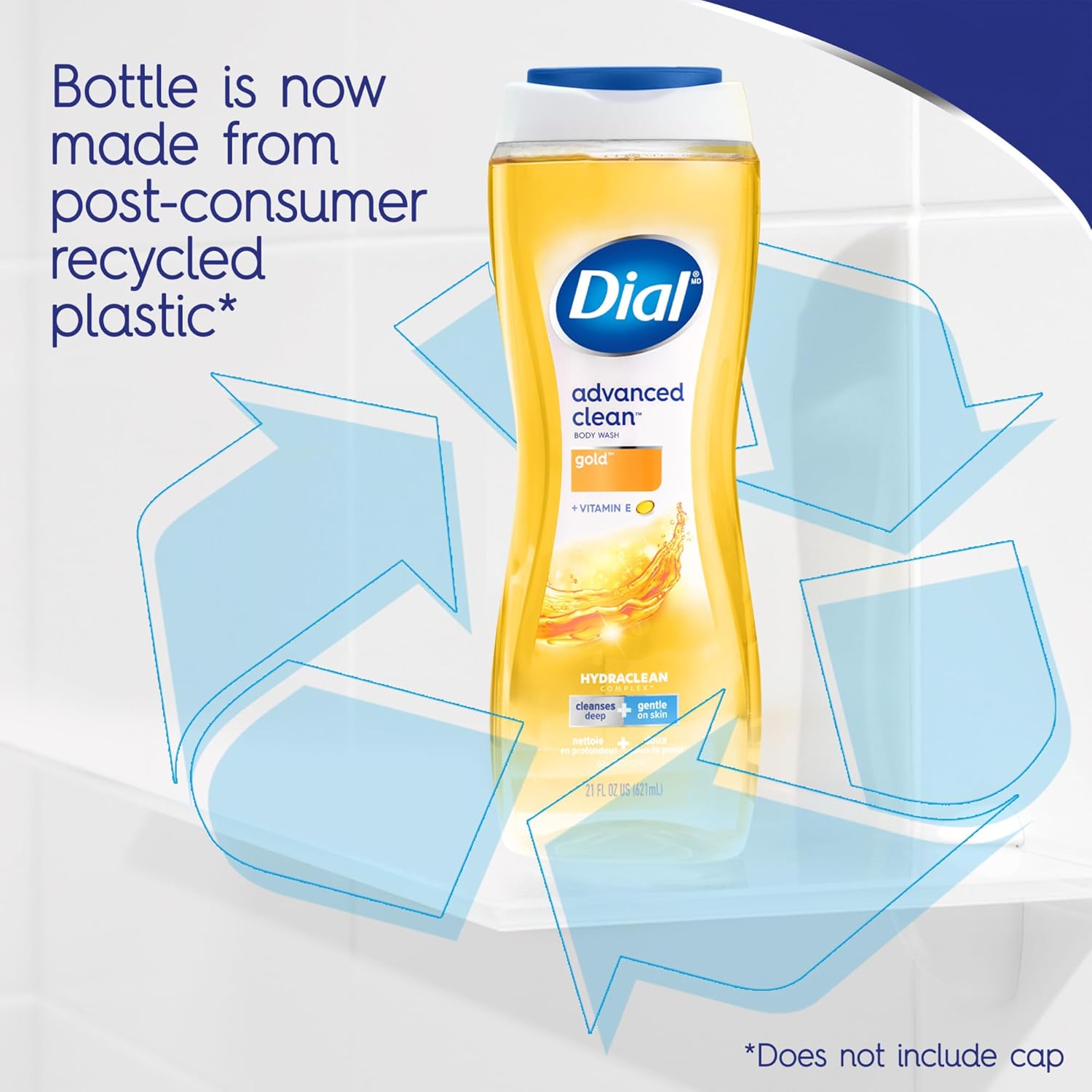Dial Body Wash, Advanced Clean Gold, 16 Fl Oz, Pack of 4, Hydraclean Complex & Vitamin E, Gentle, Leaves Skin Feeling Nourished, Dermatologist-Tested, No Parabens & Sulfates