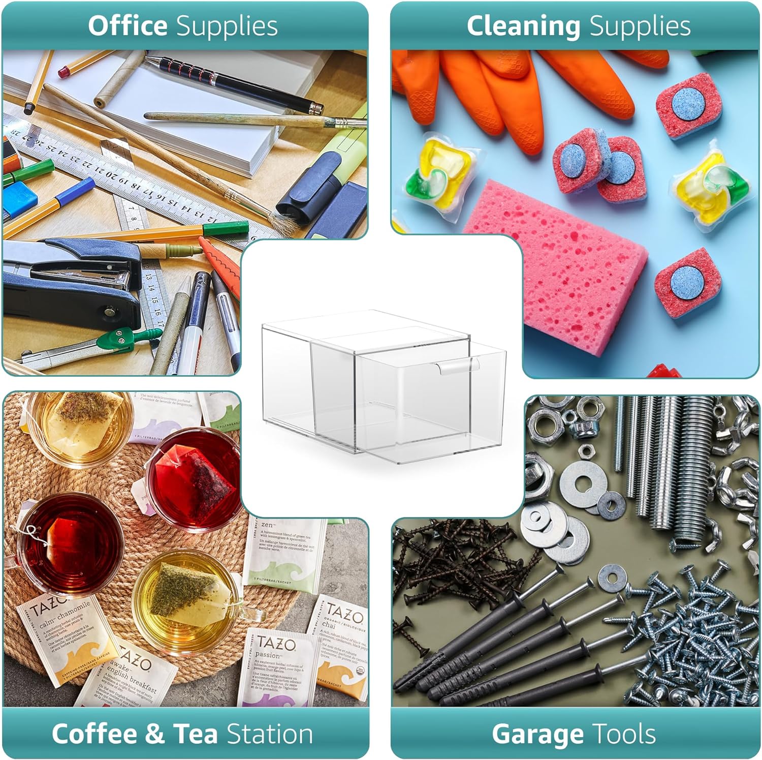 - ✅ CLEAR DESIGN FOR EASY VISIBILITY Made of thick BPA-free clear plastic so you can easily see what’s inside—ideal for cosmetics, office items, snacks, medicine, tea bags, and more.