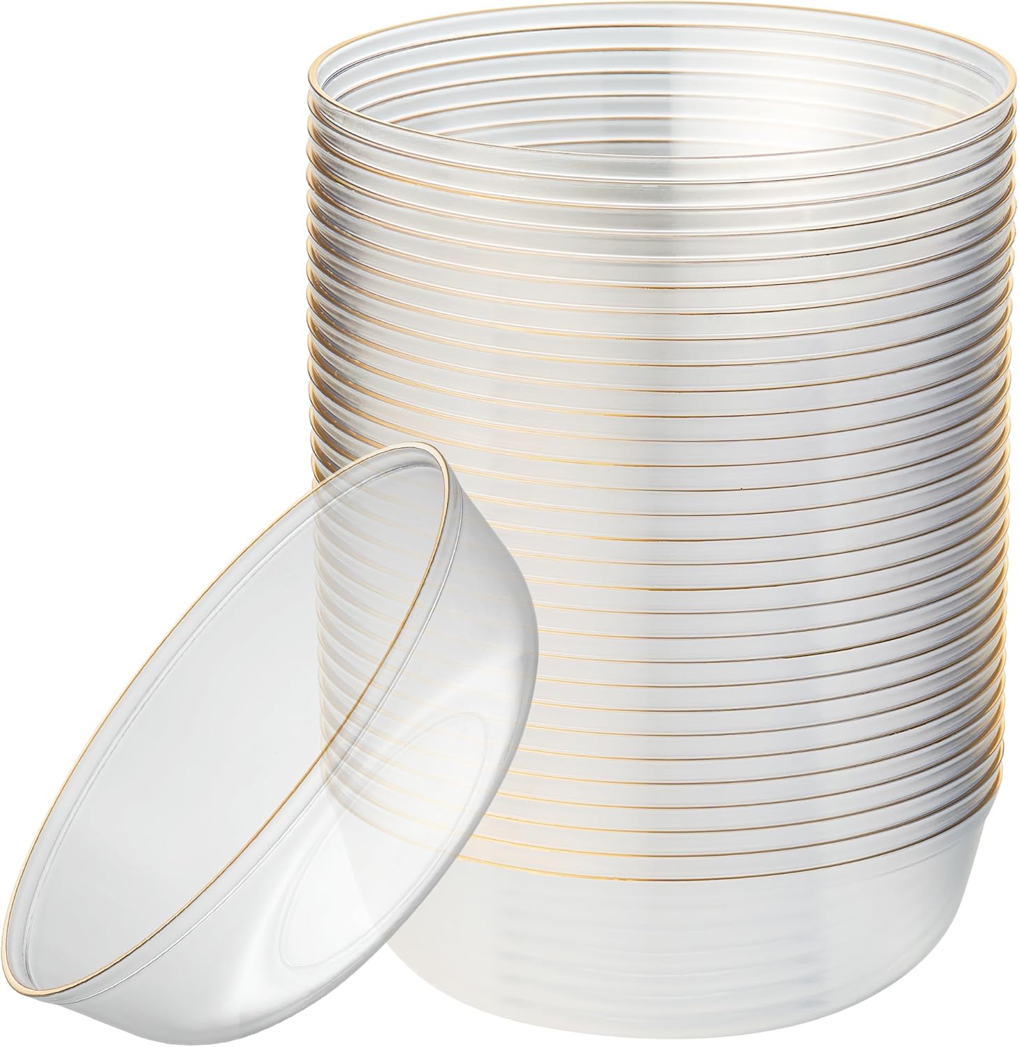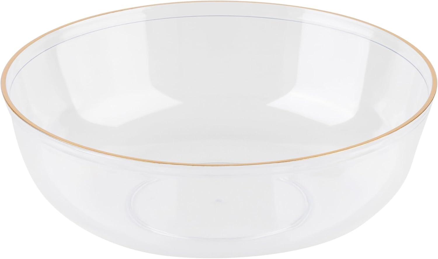 - PLASTICPRO [30 Pack 16 OZ Bowls] Edge Collection Clear with Gold Rim Plastic Party Soup Bowls Premium heavyweight Elegant Disposable Tableware Dishes