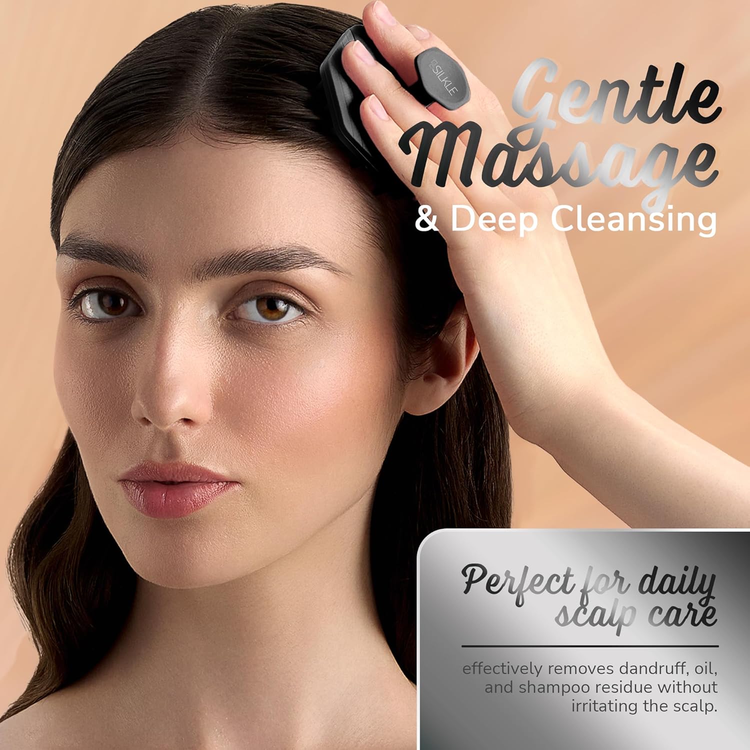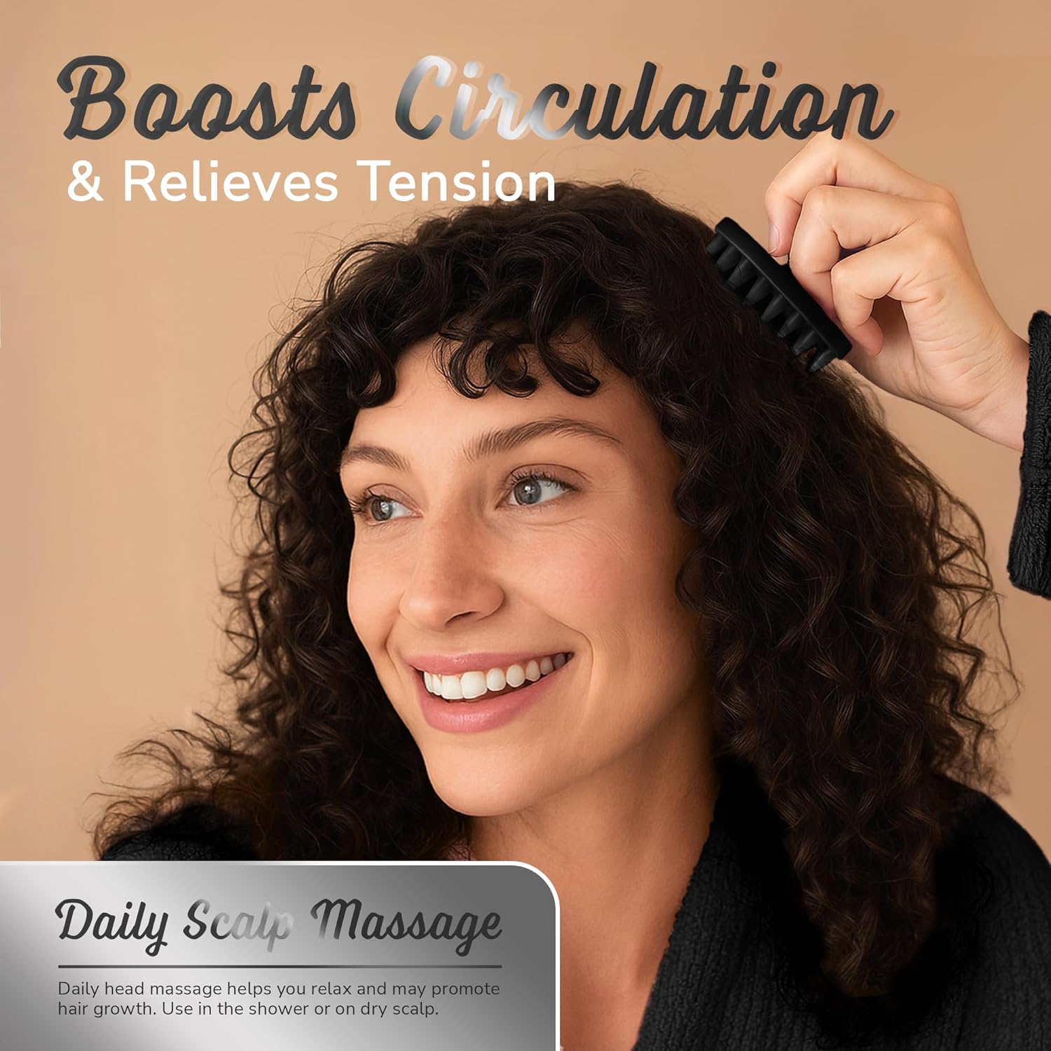 Silicone Scalp Scrubber - Massage Shampoo Brush, Soft Bristles for Hair Growth & Dandruff Removal - Ergonomic Design, Wet & Dry Use, Deep Cleansing Scalp Exfoliator for All Hair Types - Black