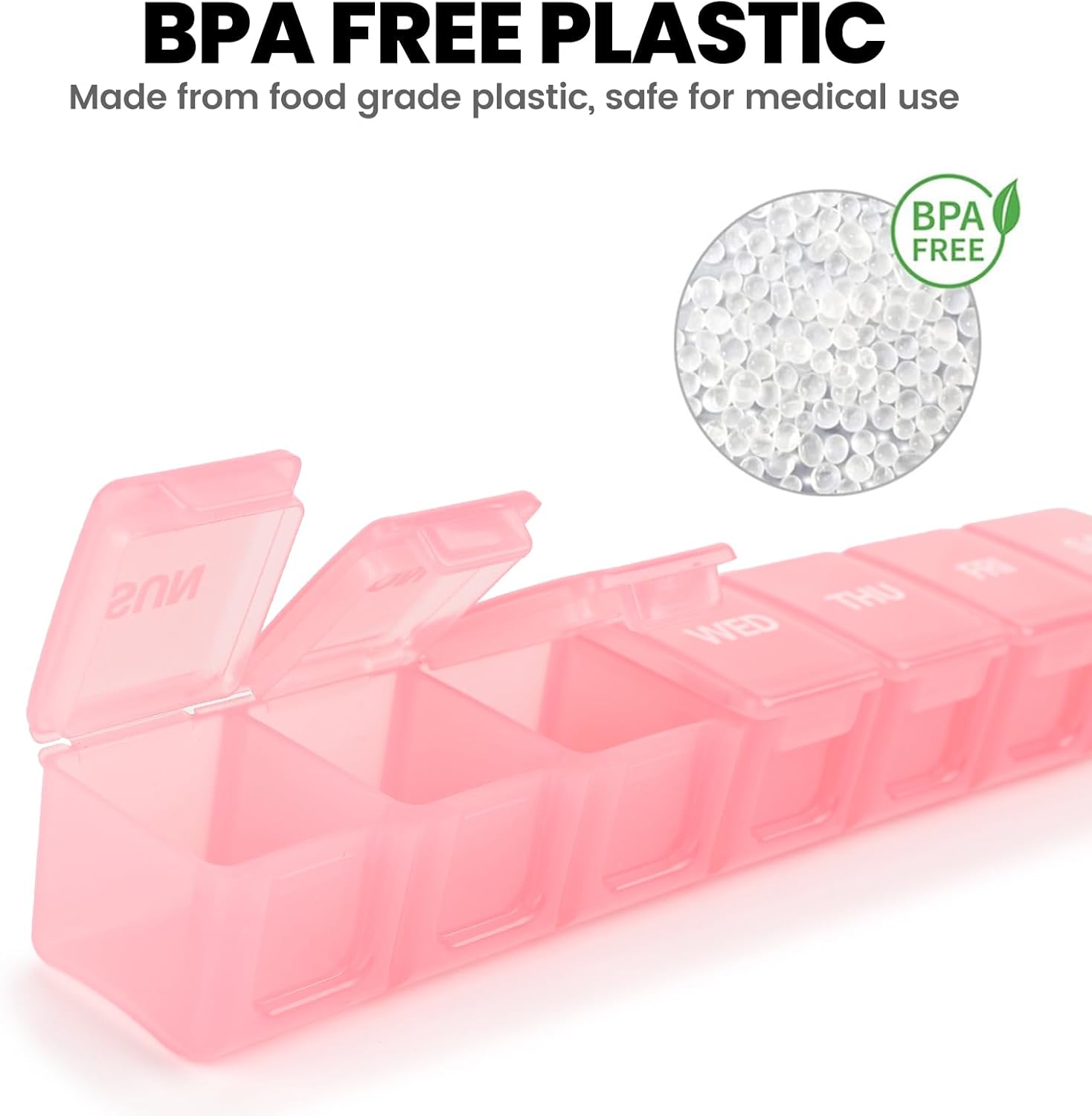 - Precision-Crafted for Lifelong Use: Engineered with a reinforced hinge, this weekly pill holder resists cracks, bends, and wear—guaranteed to withstand years of daily opening and closing.